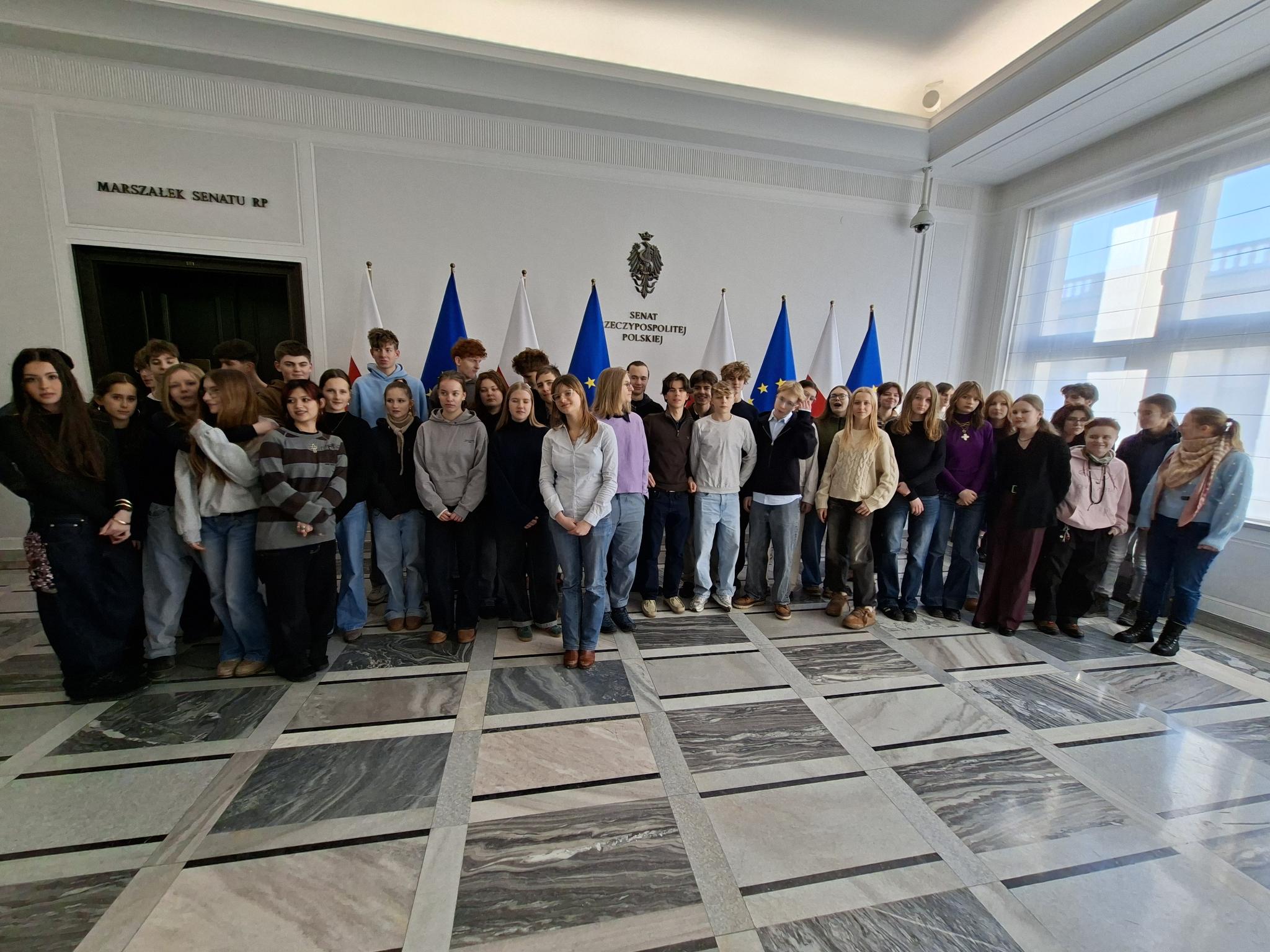 Danach ging es weiter zum Parlamentsgebäude, in dem sich der Sejm und der Senat befinden. Bei einer Führung lernten wir das politische System Polens und die Entstehung von Gesetzen kennen.