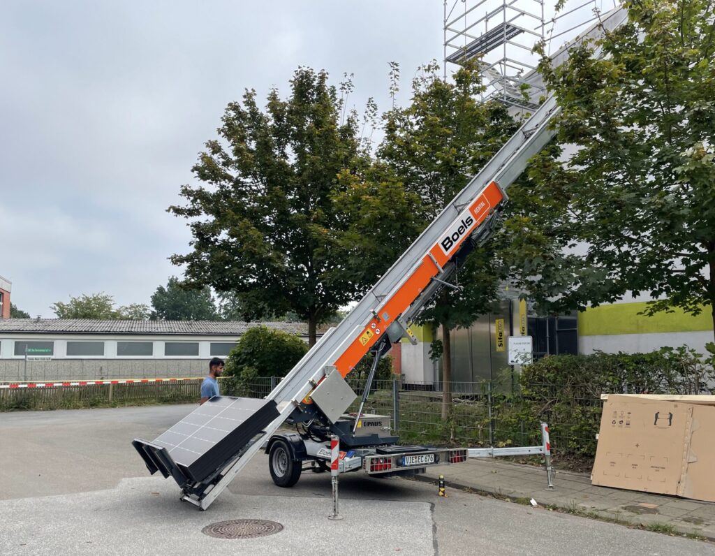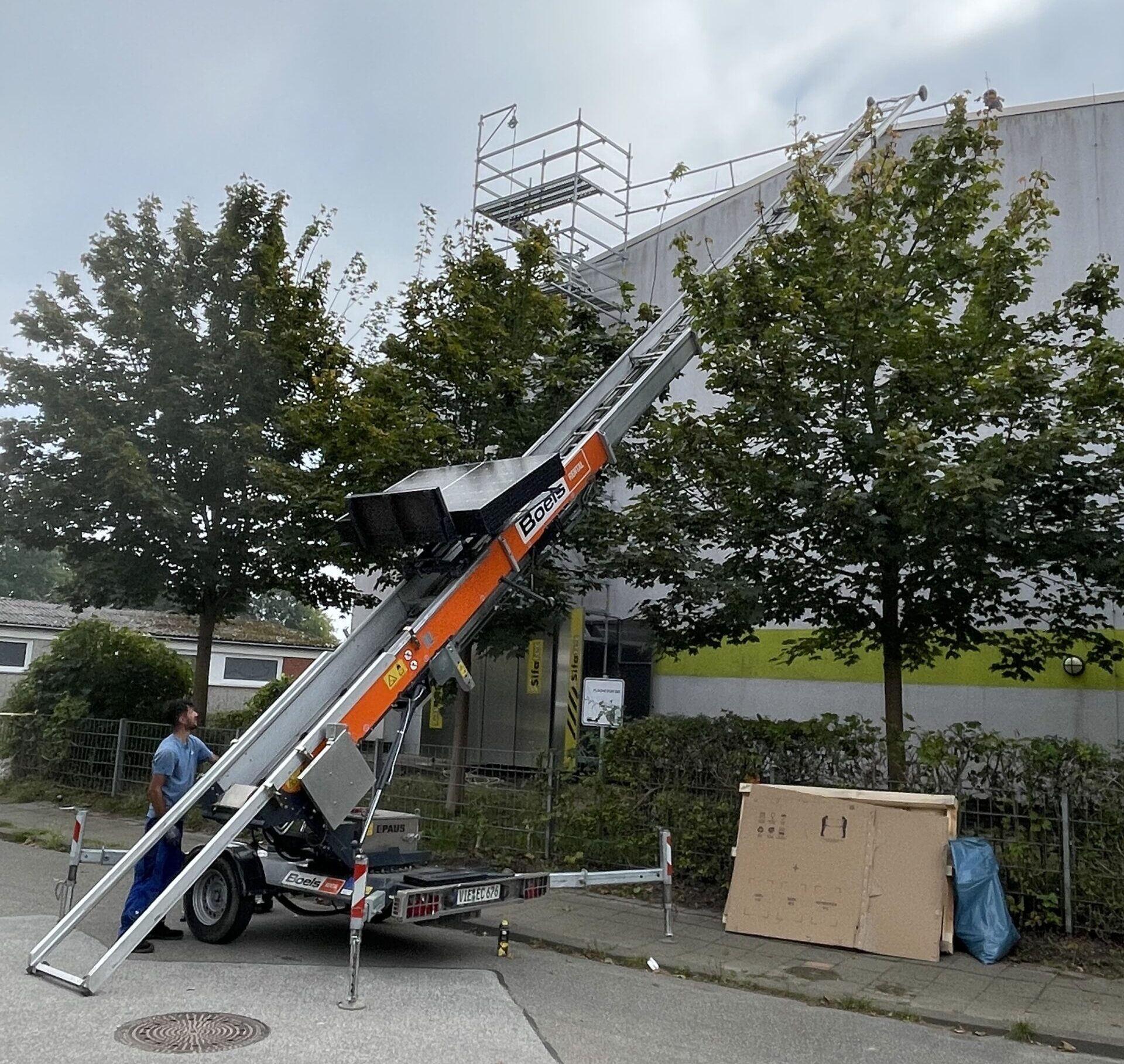 Im Gegenteil! Das Turnhallendach wird mit Solarmodulen ausgestattet, die unsere Schule mit Strom versorgen werden. Die Arbeiten bilden den ersten Schritt hin zur vollständigen Nutzung der riesigen Dachflächen, über die unser Gebäude verfügt, zur Energieerzeugung.