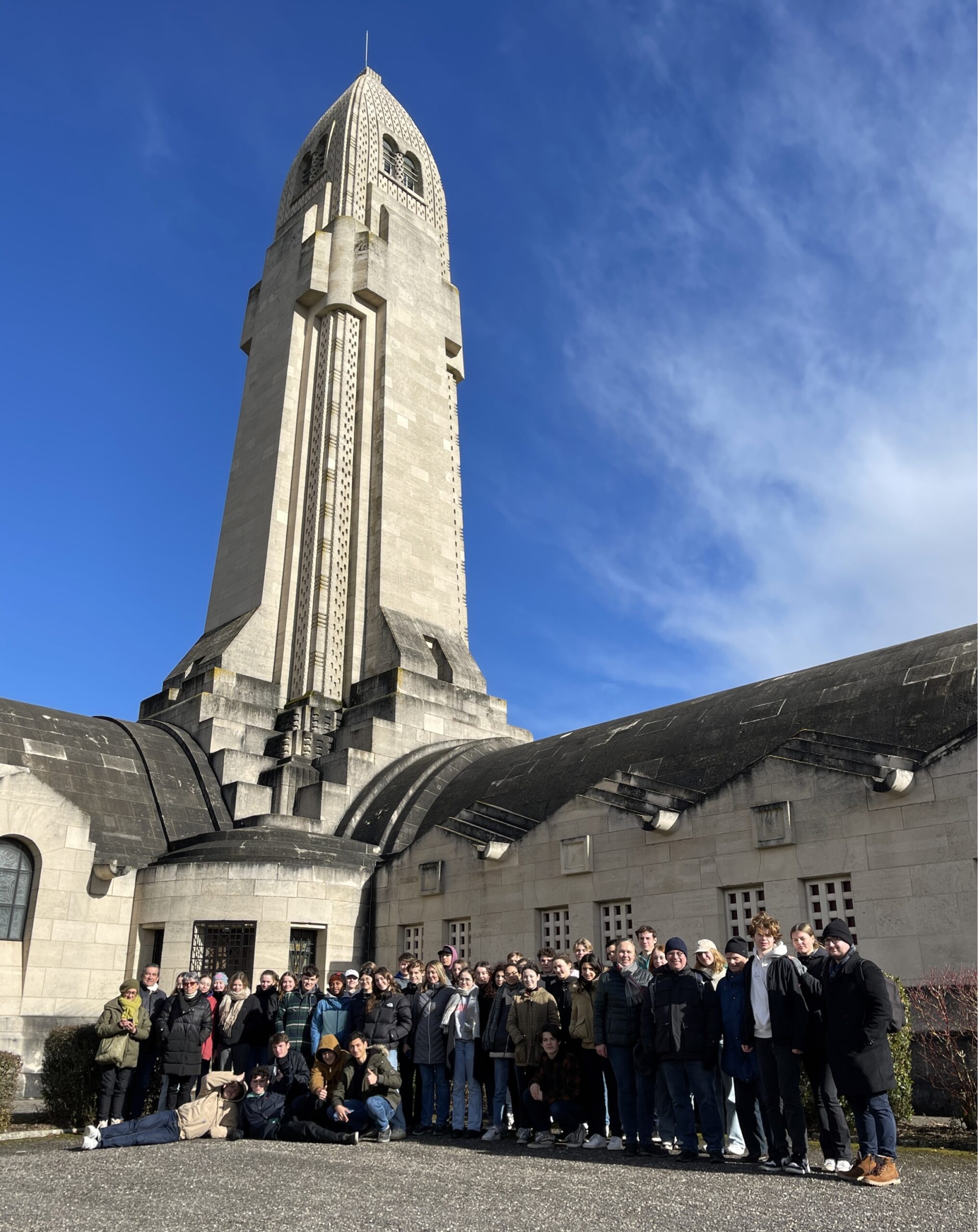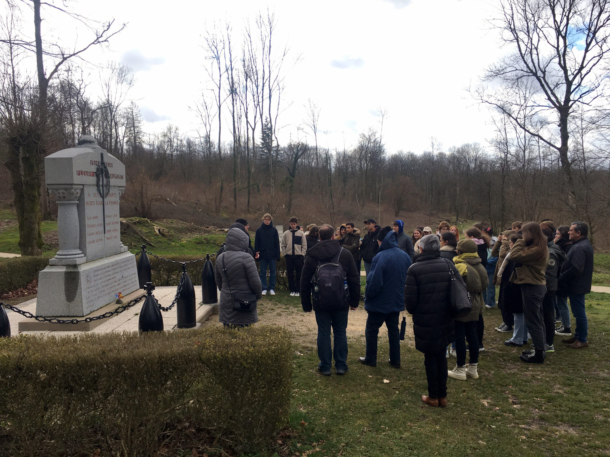 Auf der Fahrt wurden wir kurz aufgehalten, da ein umgefallener Baum die Straße versperrte. Aufgrund des im Krieg eingesetzten Giftgases ist der Boden rund um Verdun immer noch verseucht und deshalb können dort heute, auch über hundert Jahre nach der Schlacht, keine gesunden Pflanzen wachsen. Auch wenn es ein sehr kalter Tag war und das viele Herumstehen deshalb an unseren Nerven zerrte, gab es unglaublich viel zu lernen und die zweieinhalb Stunden Rückfahrt waren von einer nachdenklichen und demütigen Stimmung geprägt.