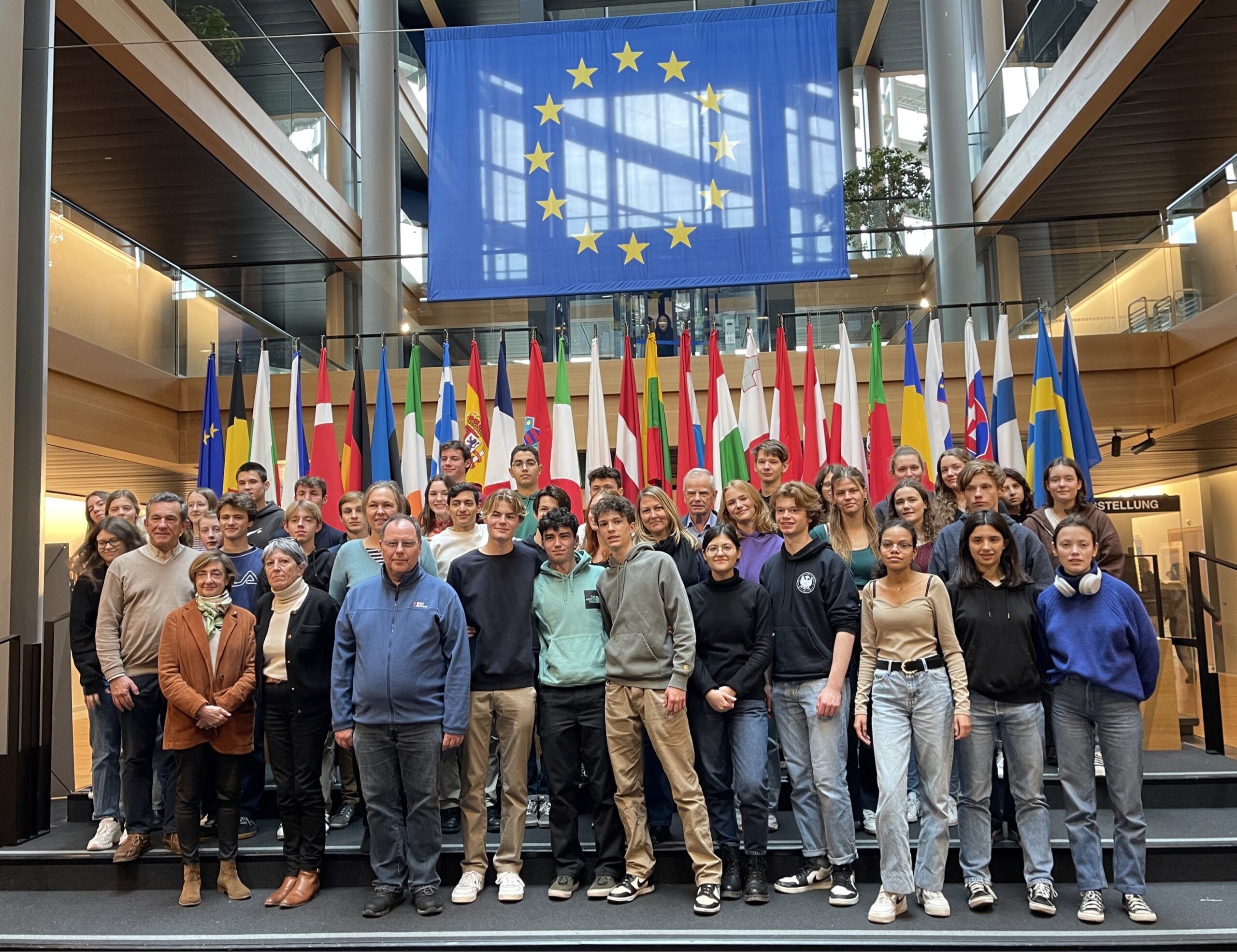 Letztes Jahr musste die eigentlich regelmäßig stattfindende Drittortbegegnung mit einer Schule aus Bordeaux wegen Corona noch abgesagt werden, doch dieses Jahr war es für 21 Schülerinnen und Schüler aus den Stufen E und Q1 endlich soweit. Von Sonntag, den 12.3. bis Freitag den 17.3. 2023, fuhren wir nach Saarbrücken und trafen dort ebenso viele Franzosen im gleichen Alter, die ein Lycée in Bordeaux besuchen. Im Laufe der fünf Tage voller Programm beschäftigten wir uns intensiv mit den deutsch-französische Beziehungen und der europäischen Integrationsarbeit in Vergangenheit, Gegenwart und Zukunft.