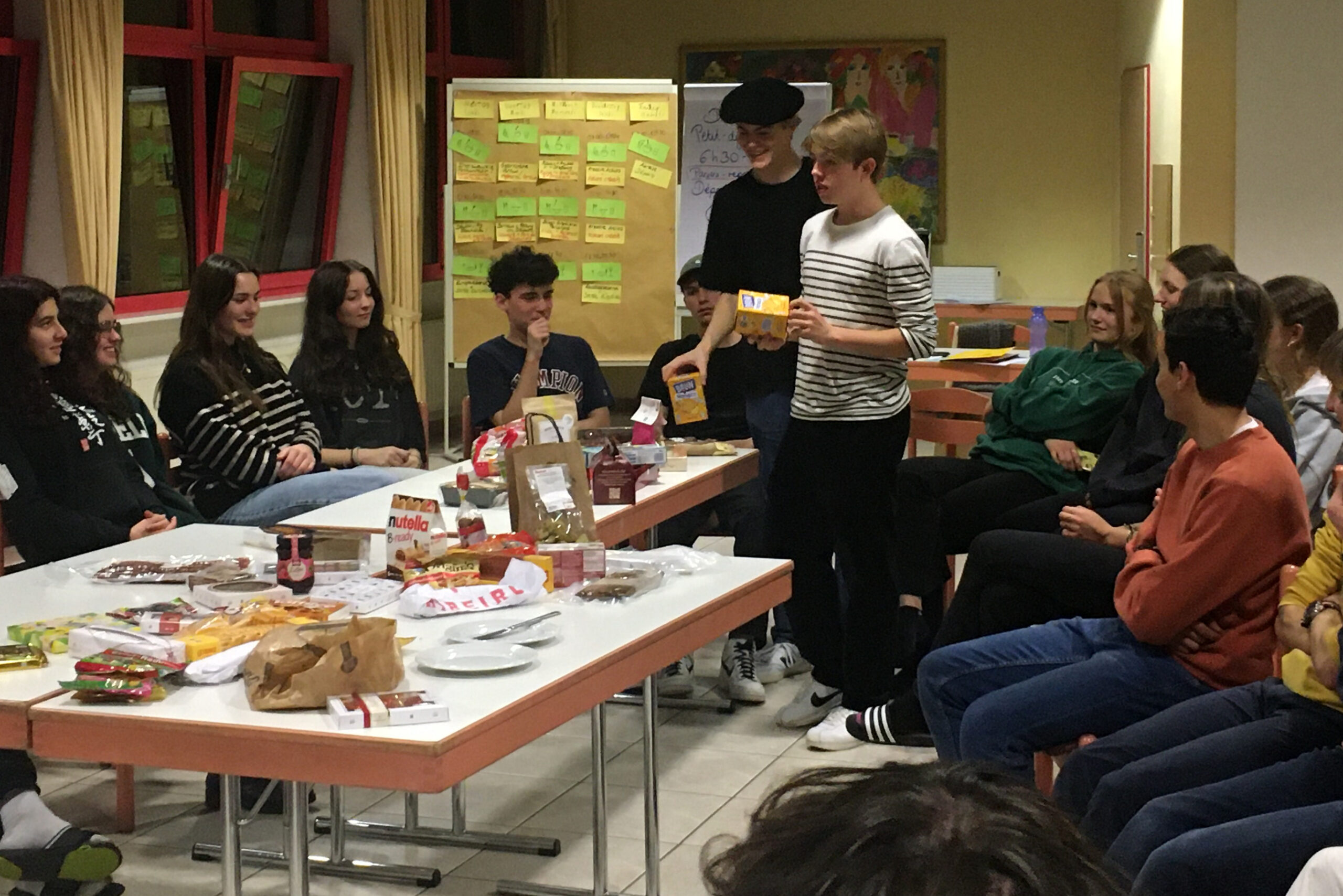Montag lief das Programm noch recht entspannt an: In verschiedenen Gruppenkonstellationen arbeiteten wir die deutsch-französische Geschichte sowie wichtige Ereignisse auf dem Weg zu dem Europa, wie wir es heute kennen, auf. Außerdem spielten wir natürlich auch einige Kennenlernspiele und am Abend präsentierten sich die Jugendlichen beider Nationen verschiedene kulinarische Spezialitäten aus ihren jeweiligen Ländern.