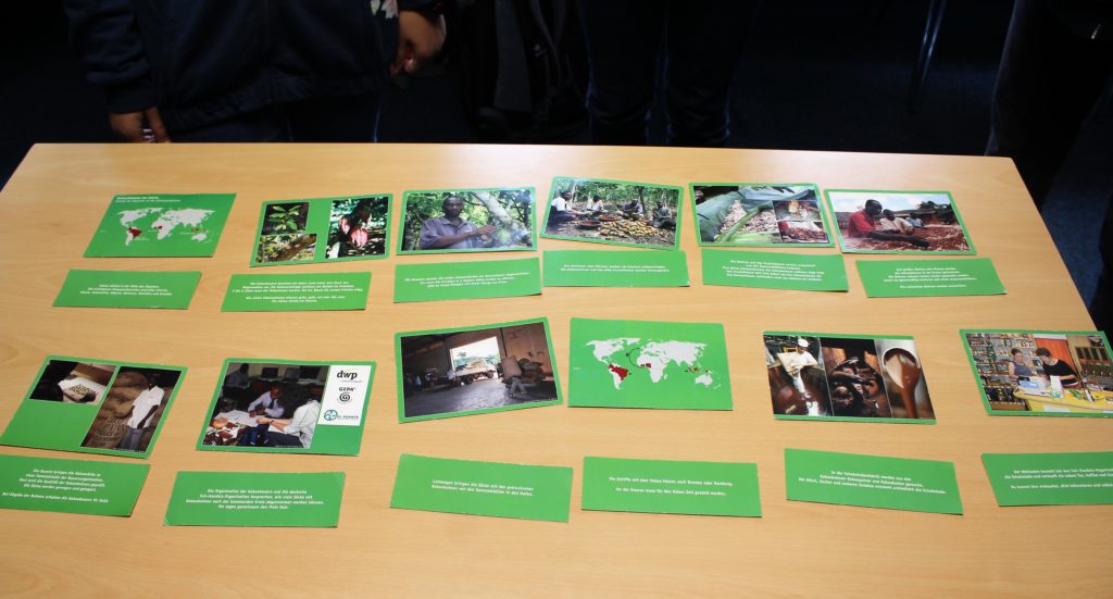 Dann sehen wir einen Film, der über die Arbeitsbedingungen auf den Kakaoplantagen informiert. Danach ist es still im Raum. Meine Mitschüler und ich sind schockiert: Kindersklaven schuften auf den Farmen an der Elfenbeinküste. Dass es das heute noch gibt, hat niemand von uns für möglich gehalten. Auch den erwachsenen Landarbeitern geht es schlecht. Sie verdienen nur ein Achtel dessen, was sie zum Leben bräuchten.