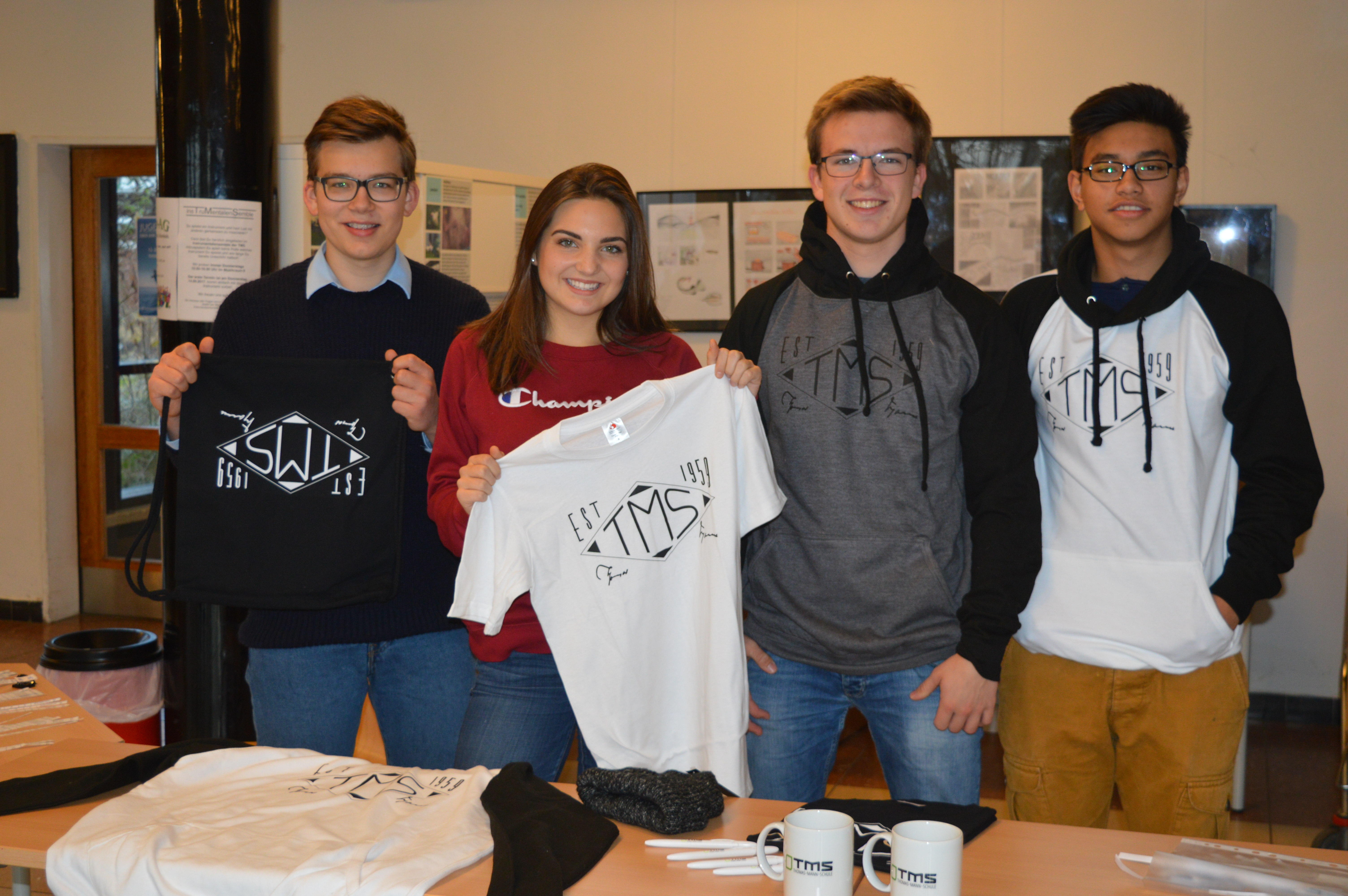 Es ist so weit: Hoodys, T-Shirts und Mützen mit dem selbst entworfenen TMS-Logo können seit einigen Tagen in den Pausen beim Stand des „Kleiderschranks“ in der Europahalle während der Pausen abgeholt werden.