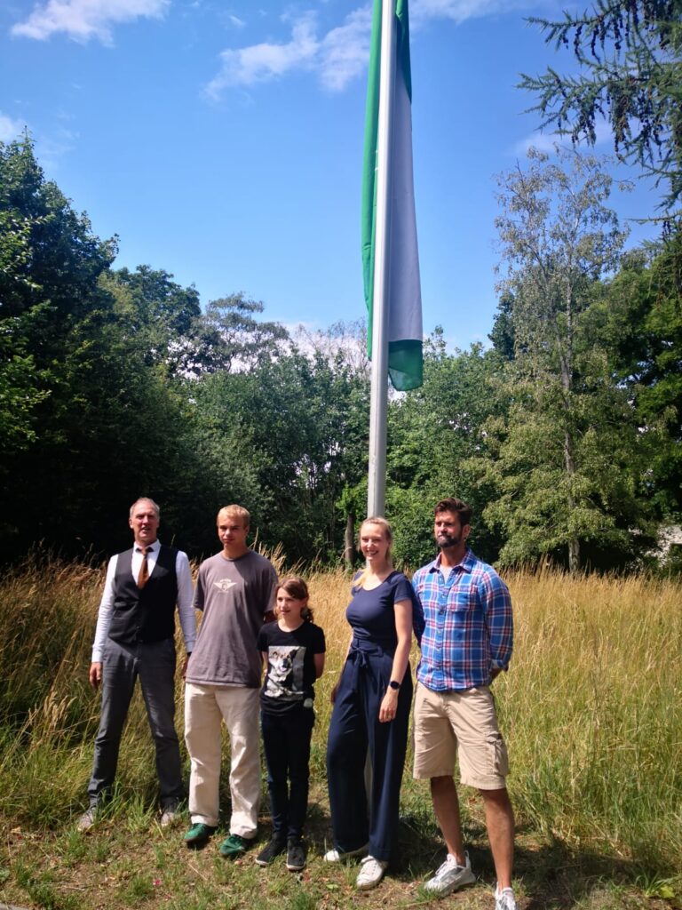 In guter seemännischer Tradition wird die Flagge immer dann wehen, wenn die „Mannschaft an Bord“ ist, d.h. Schulbetrieb herrscht, betonte unser „Kapitän“ Herr Rother.