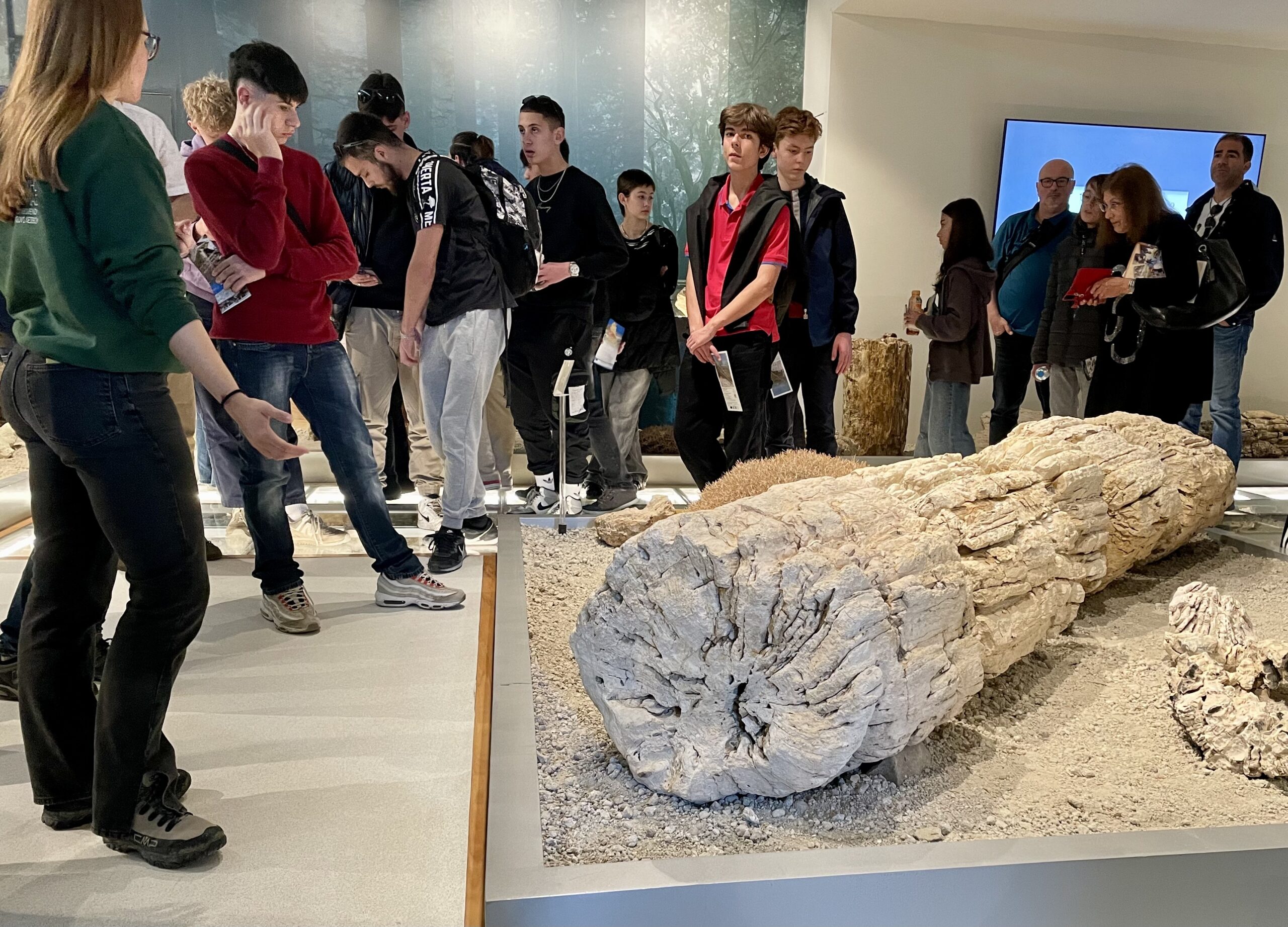 Wir haben eine Führung durch das Museum gemacht und viel über die Entwicklung von Leben auf unserer Erde und Vulkanismus gelernt. So haben wir zum Beispiel Abdrücke von Samen und Blättern von damaligen Pflanzen auf den pyroklastischen Gesteinen und sogar das versteinerte Gebiss eines Urelefanten mit dem eines heutigen Gegenstückes verglichen. Es war total interessant und irgendwie seltsam, Steine, die wie Baumstämme aussahen (was sie ja auch mal waren), zu berühren.