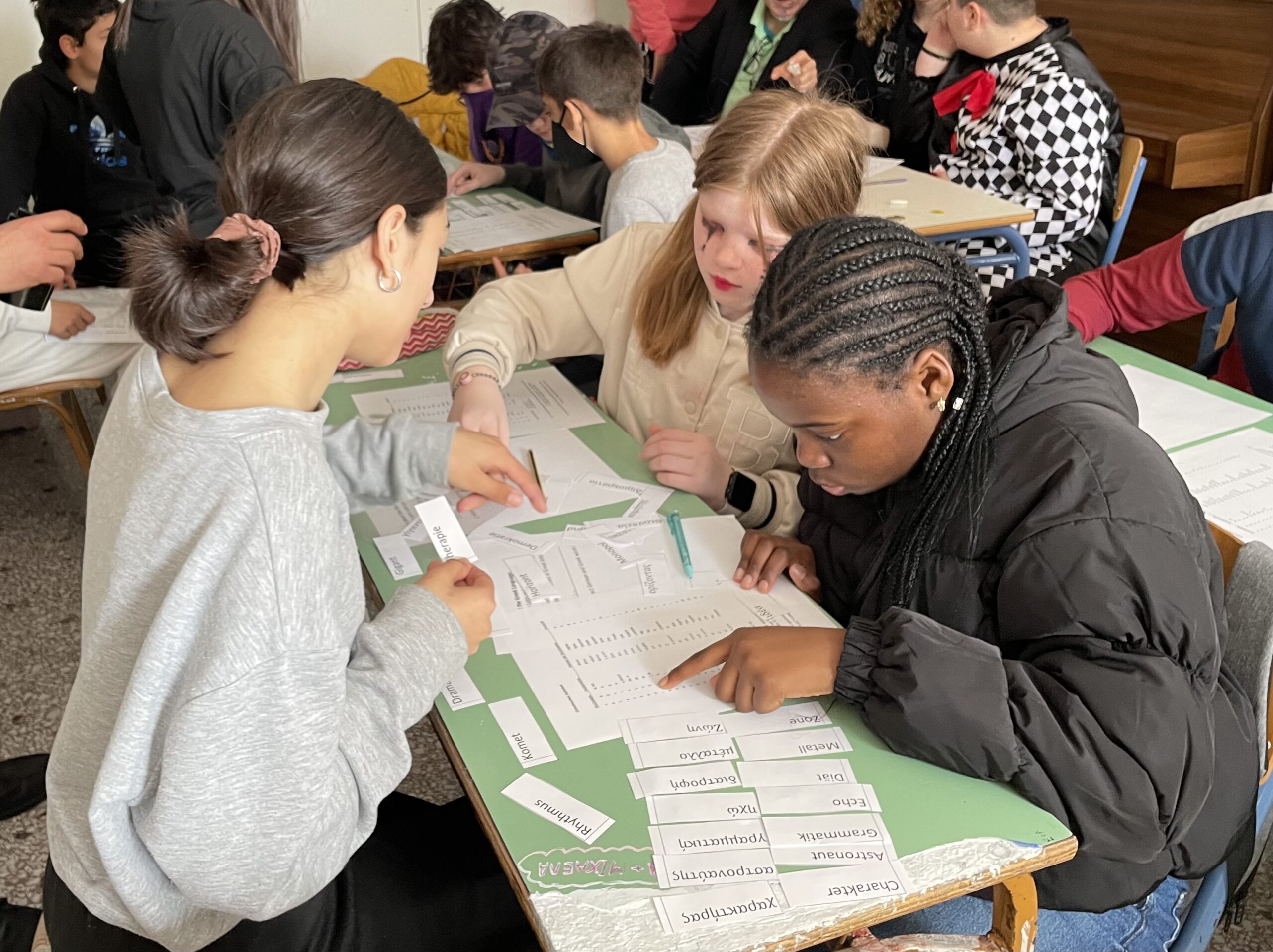 Freitag war leider unser letzter Tag. Morgens haben wir uns traurig von unseren Gastfamilien verabschiedet, die wir selbst in der kurzen Zeit sehr ins Herz geschlossen haben. Ein letztes Mal fuhren wir in die griechische Schule. Dort hatten wir zunächst Griechisch-Unterricht, wo wir das griechische Alphabet kennengelernt und deutsche Wörter der griechischen Übersetzung zugeordnet haben. Wir erkannten, dass wir in den Bereichen Politik, Astronomie und Seefahrt sowie dem Theater mit den Begriffen auch die Innovationen aus Griechenland ins Deutsche übernommen haben.