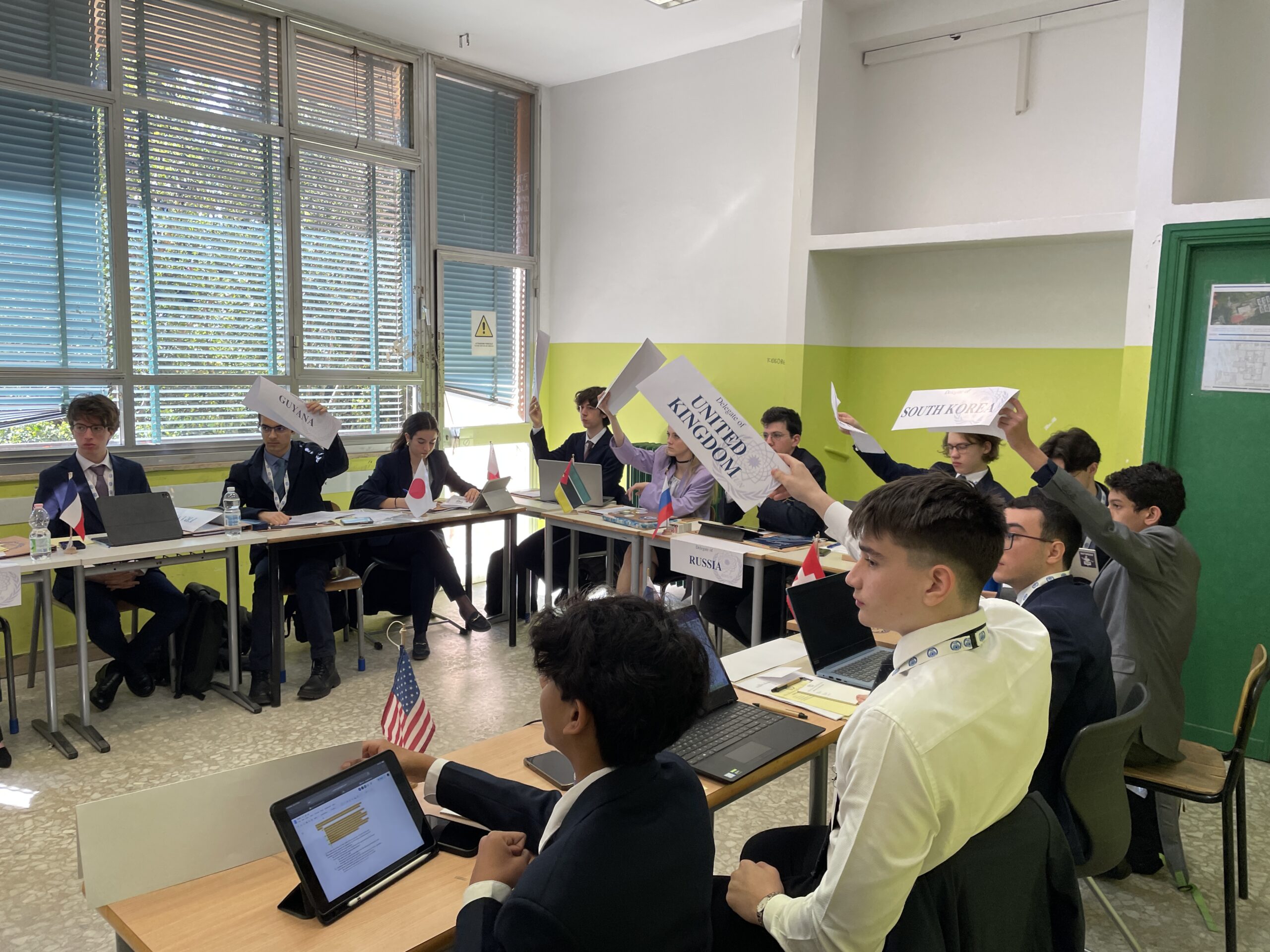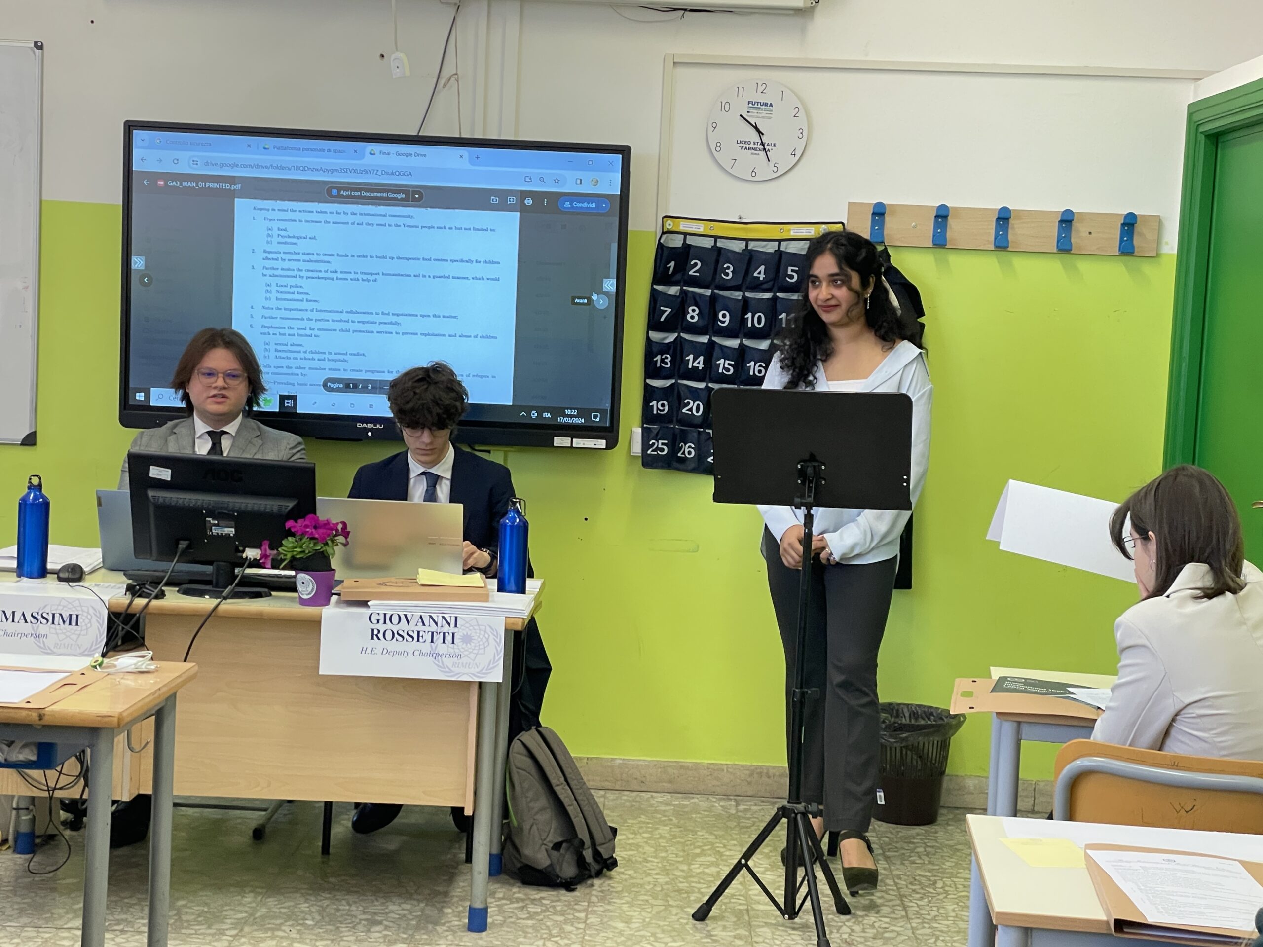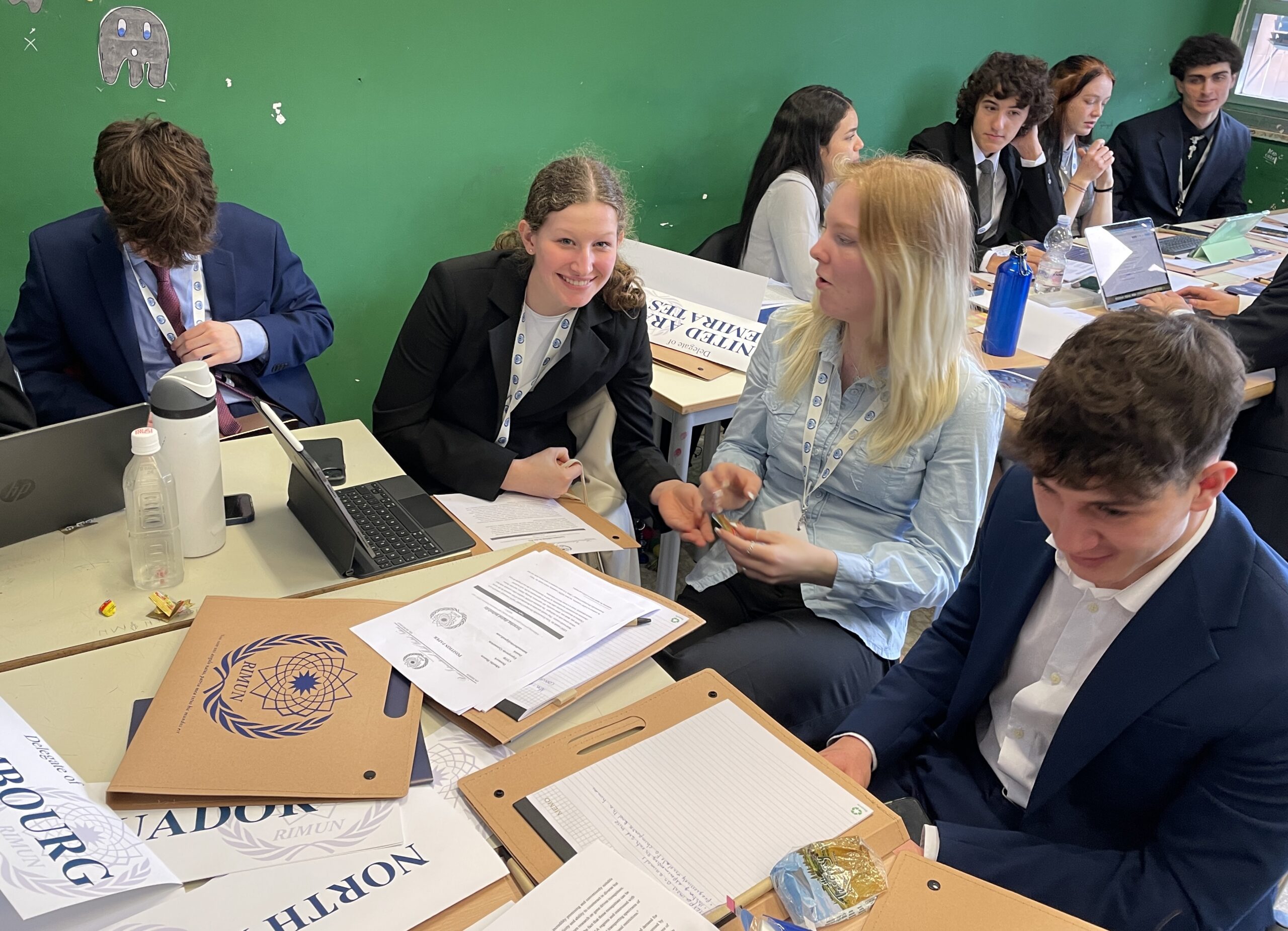 Am Sonnabend, den 16.03.2024 waren wir den ganzen Tag mit Lobbying beschäftigt, die Delegierten unserer Schule vertraten China, den Iran, Italien, den Sudan und die USA. Wir schrieben Resolutionen und begannen an diesem Tag mit Schülerinnen und Schülern aus der ganzen Welt wie Caracas, Dänemark, Indien, Mexiko, Rumänien, Polen, Singapur, USA und anderen zu debattieren.