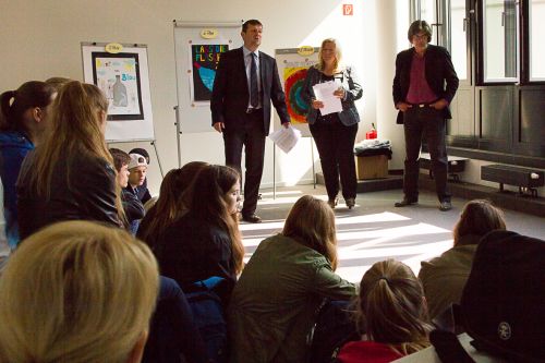 Herr Thorn (Leiter des Fachbereichs der Stadt Lübeck Schule und Sport) sowie Frau Hunwardsen und Herr Junker (DAK Lübeck) lobten das Engagement der SchülerInnen sowie der TMS und überreichten dann Urkunden und Sachpreise an die PreisträgerInnen.