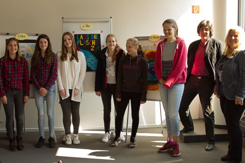 Die Klasse hat sich im fachübergreifenden Unterricht mit der Thematik intensiv auseinandergesetzt: Die SchülerInnen haben recherchiert, eine Drogenpräventionsveranstaltung besucht, den Roman „Hau ab, Du Flasche“ gelesen und schließlich Plakate zum Thema „Bunt statt Blau“ gestaltet. Drei der Plakate erreichten Landespreise – Herzlichen Glückwunsch!