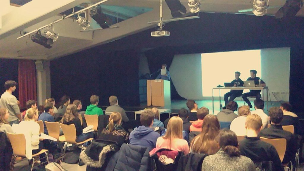 Als besonderes Projekt fand die Bundestagssimulation am 19. September 2017 statt. Dort wurde der Deutsche Bundestag in prozedural vereinfachter, aber inhaltlich ähnlicher Form simuliert. Im Vorfeld dazu wurden die Abgeordneten bei verschiedenen Treffen in die Funktionsweise einer Parlamentsdebatte eingeführt und ihnen die beiden Themen auf der Tagesordnung, die Legalisierung von Cannabis und die Videoüberwachung auf öffentlichen Plätzen erläutert. Ein besonderer Dank daher noch einmal an Mika Parlowsky, der die Gesetzentwürfe geschrieben und als Bundeskanzler eingebracht hat. Zudem haben die Parteien bei „Parteitagen“ Funktionsträger gewählt und sich inhaltlich abgestimmt. Mit etwas über 50 TeilnehmerInnen aus den Jahrgängen 8-Q2 und vielen positiven Rückmeldungen kann die Veranstaltung als großer Erfolg gewertet werden, mit der die im Vorfeld festgelegten Ziele (politische Weiterbildung, Einblicke in die Arbeit des Bundestages („Politik ist gar nicht so einfach!“), Schulung rhetorischer Fähigkeiten, Überblicksverschaffung über Parteiprogramme und -positionen, kontroverse Diskussion) auf jeden Fall erreicht wurden.