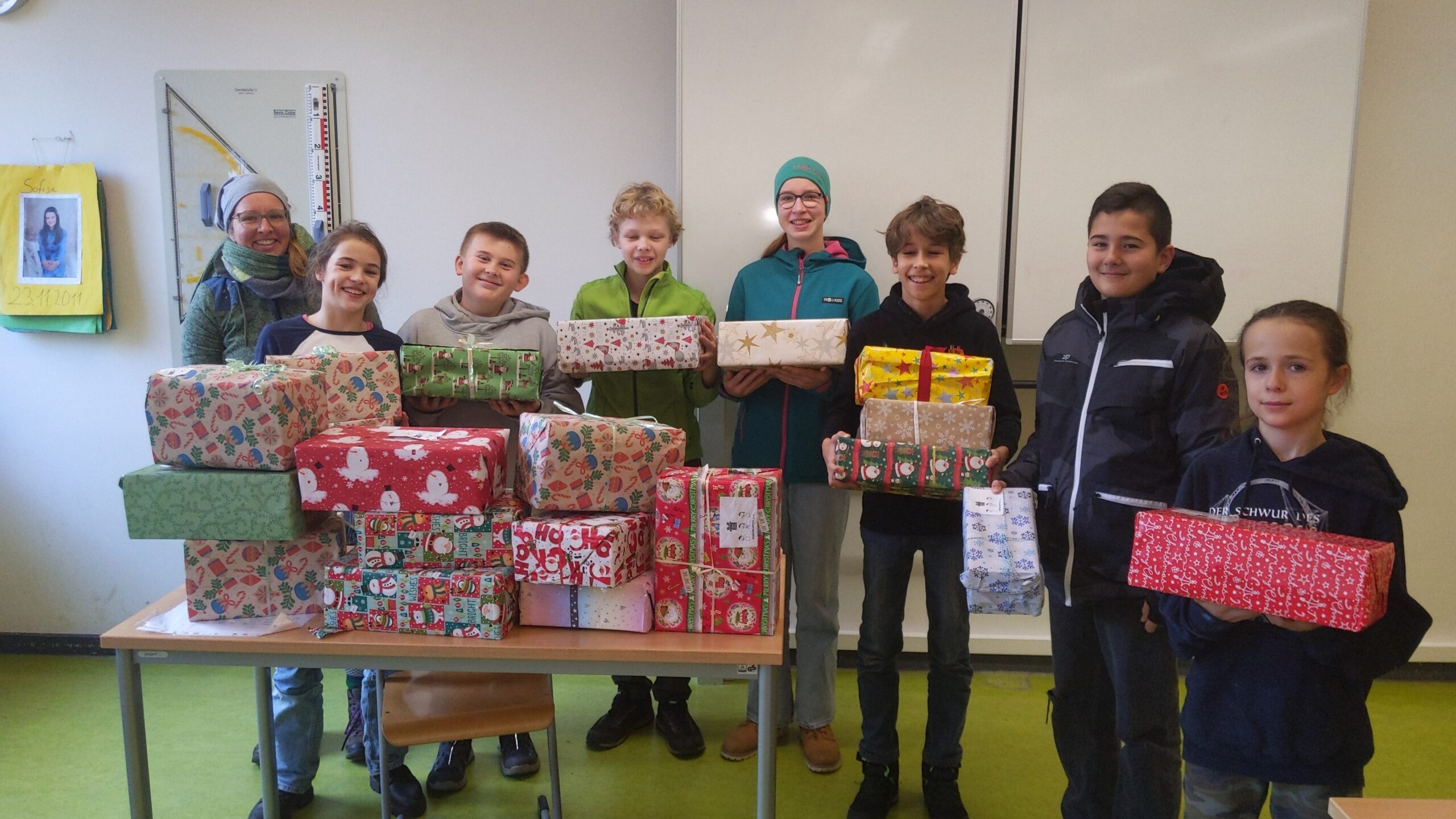 Wir werden mit insgesamt 31 bunt verpackten Geschenken vielen Kindern eine große Freude machen. Unter dem Motto“ Kinder helfen Kinder“ haben wir Spielzeug, Süßigkeiten und vieles mehr verpackt und in unserer Klasse gesammelt. Diese wurden abgeholt und zu einer Sammelstelle gebracht, wo der Weihnachtspäckchen-Konvoi die Geschenke zu Kindern in Bulgarien, Moldawien, Polen, Rumänien und der Ukraine bringt. Diese Aktion ist eine Initiative des Round Table, Ladies Circle, Agora Club Tangent und Old Tablers. Dieses Jahr sind 143.095 Päckchen unterwegs, um ein Strahlen in die Gesichter der Kinder zu zaubern.