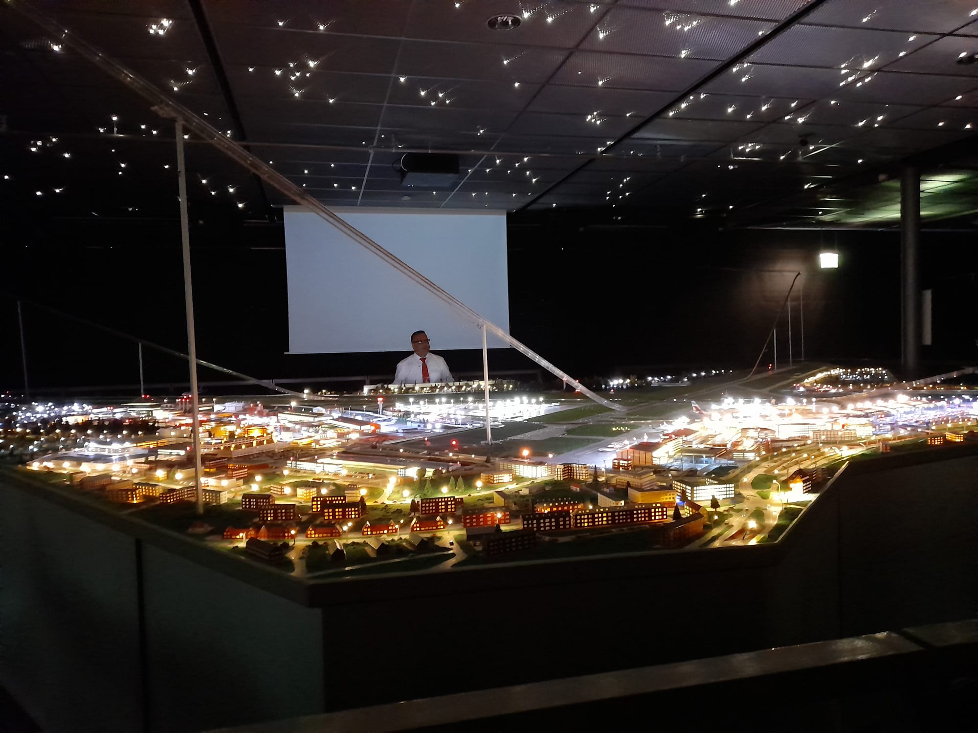 Nach den Interviews besuchten wir noch den Modellflughafen, wo wir eine Tag-und Nachtpräsentation der Flughafenabläufe erhielten.
