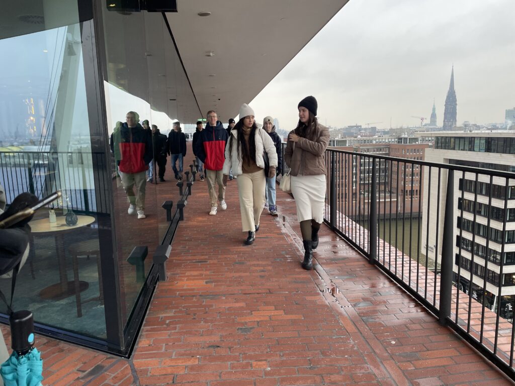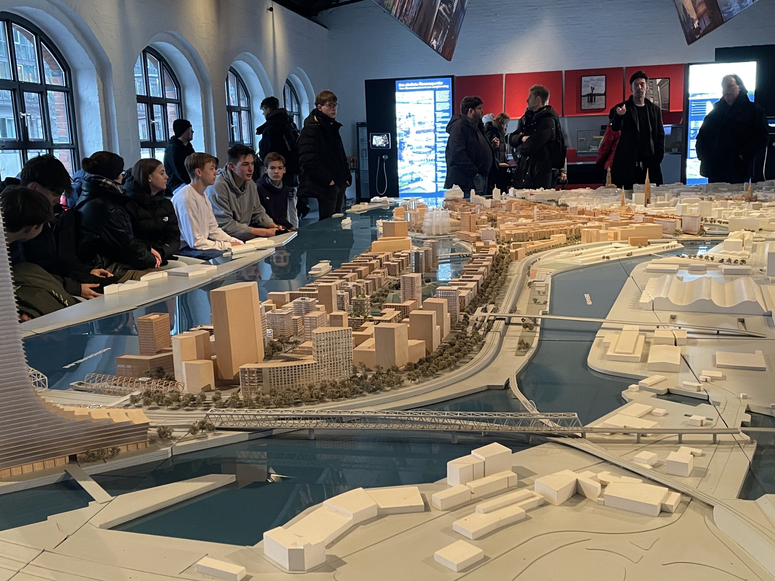 Einen Höhepunkt des gemeinsamen Programms war der Besuch in der Hamburger Hafen City. Nachdem die Jugendlichen und ihre Lehrkräfte sich einen Überblick über das neue Stadtviertel von der Plattform der Elbphilharmonie und am Modell im ehemaligen Kesselhaus der Speicherstadt verschafft hatten, führte sie ein Rundgang zu markanten Gebäuden.
