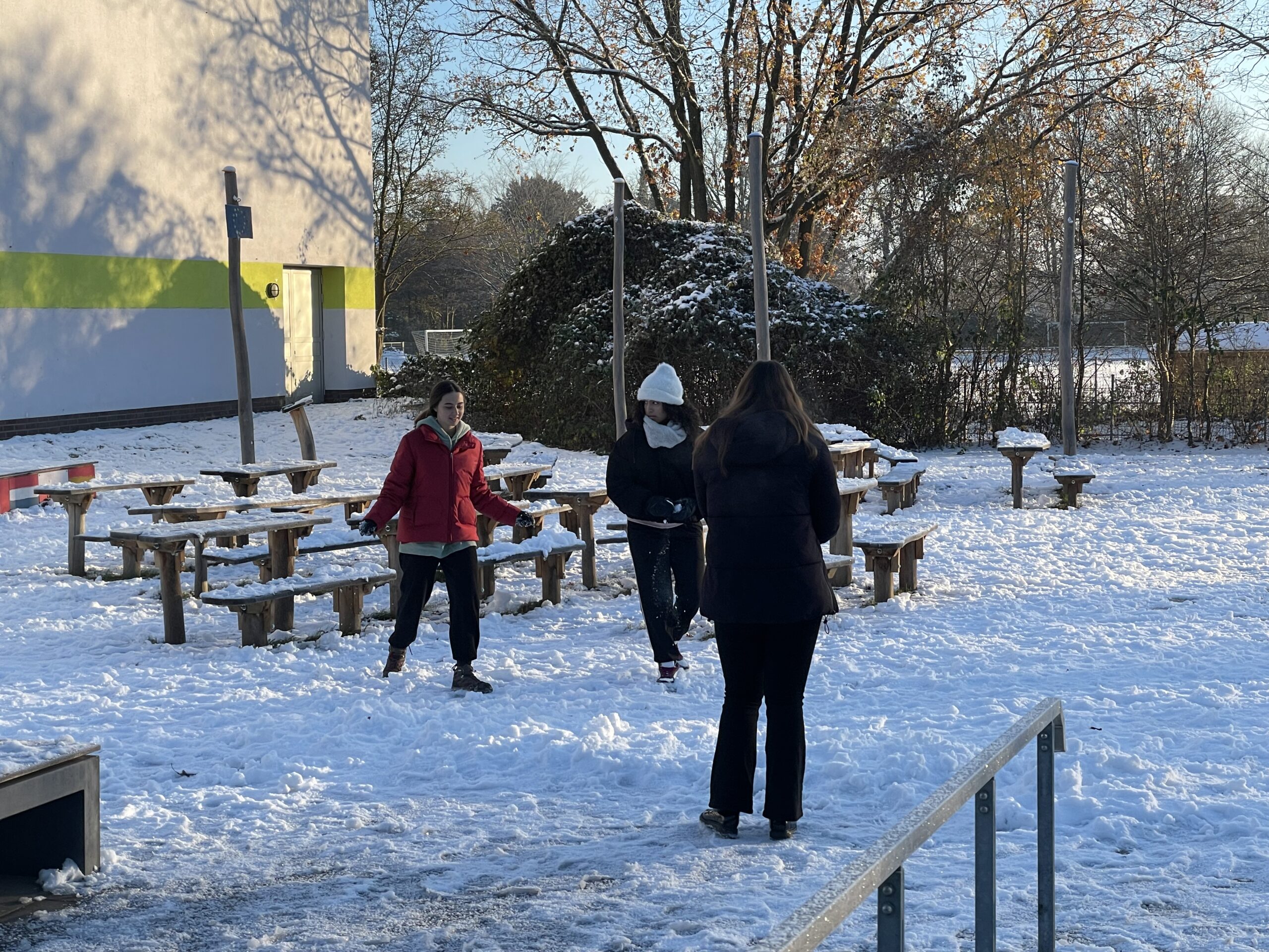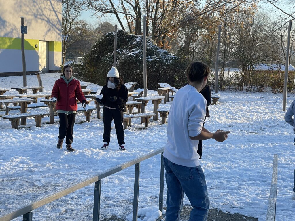 Und dann lernten unsere Gäste Wasser auch in gefrorener Form kennen, die zu mancher Schneeballschlacht einlud. Für viele spanische Schülerinnen war es das erste Mal, dass sie mit Wasser in dieser Form in Berührung gekommen waren.