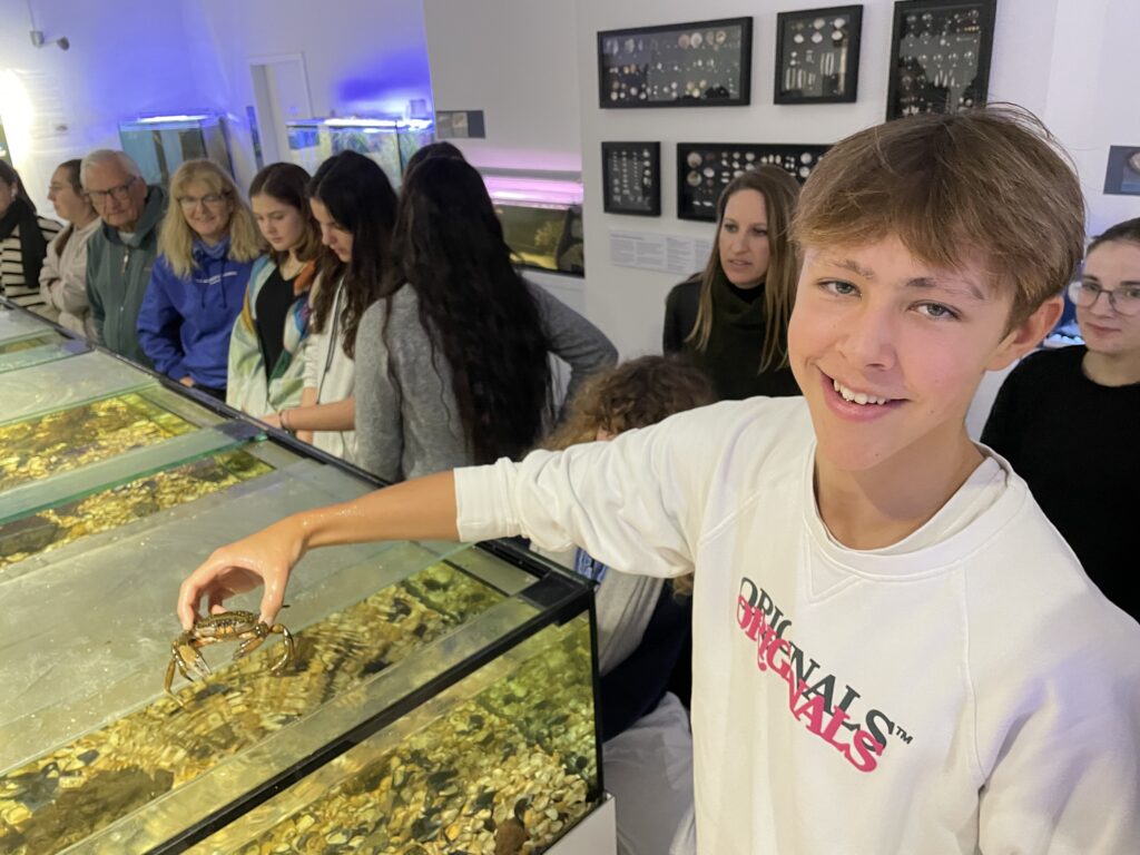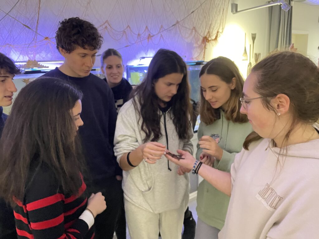 Seesterne streicheln, Krabben füttern und im Sand eingegrabene Schollen entdecken stand beim Ausflug zur Ostseestation in Travemünde auf dem Programm. Außerdem untersuchten die Projektteilnehmer Wasserproben aus dem Travemünde Hafen auf Plankton und versuchten die Larven verschiedener Meeresbewohner den ausgewachsenen Exemplaren zuzuordnen. Dieser interaktive Teil des Projekts kam bei den Jugendlichen besonders gut an.