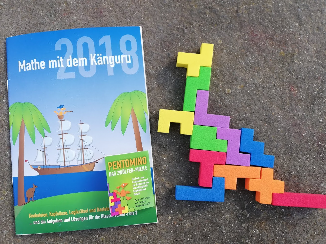 Neben der Broschüre „Mathe mit dem Känguru 2018“ gibt es in diesem Jahr das PENTOMINO als Teilnehmerpreis. Viel Spaß beim Knobeln und Puzzeln!