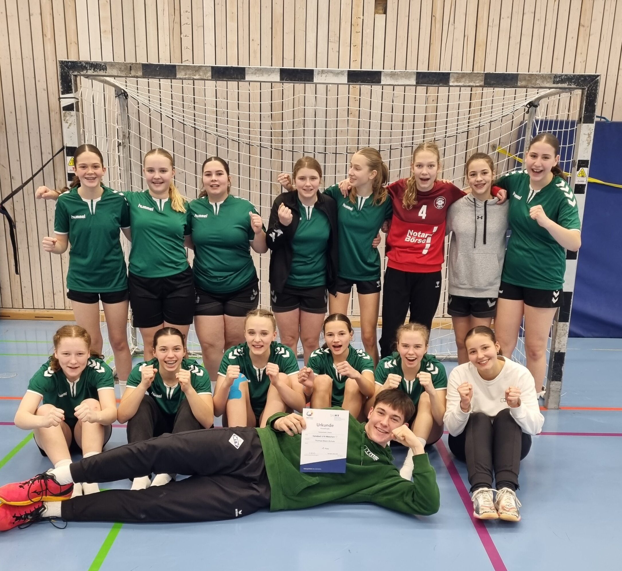 unsere Mädchenmannschaft hat mit tatkräftiger Unterstützung der beiden Trainer Johann Gerull und Greta Anlauf ein erfolgreiches Turnier gespielt und souverän den ersten Platz erreicht. Die Mannschaft strahlte während des gesamten Turniers viel Spielwitz, Energie und Teamgeist aus und freut sich schon auf das Landesfinale. Anbei ein paar Impressionen vom heutigen Spieltag mit einem besonderen Ergebnis für unser Team gegen einen besonderen Gegner.