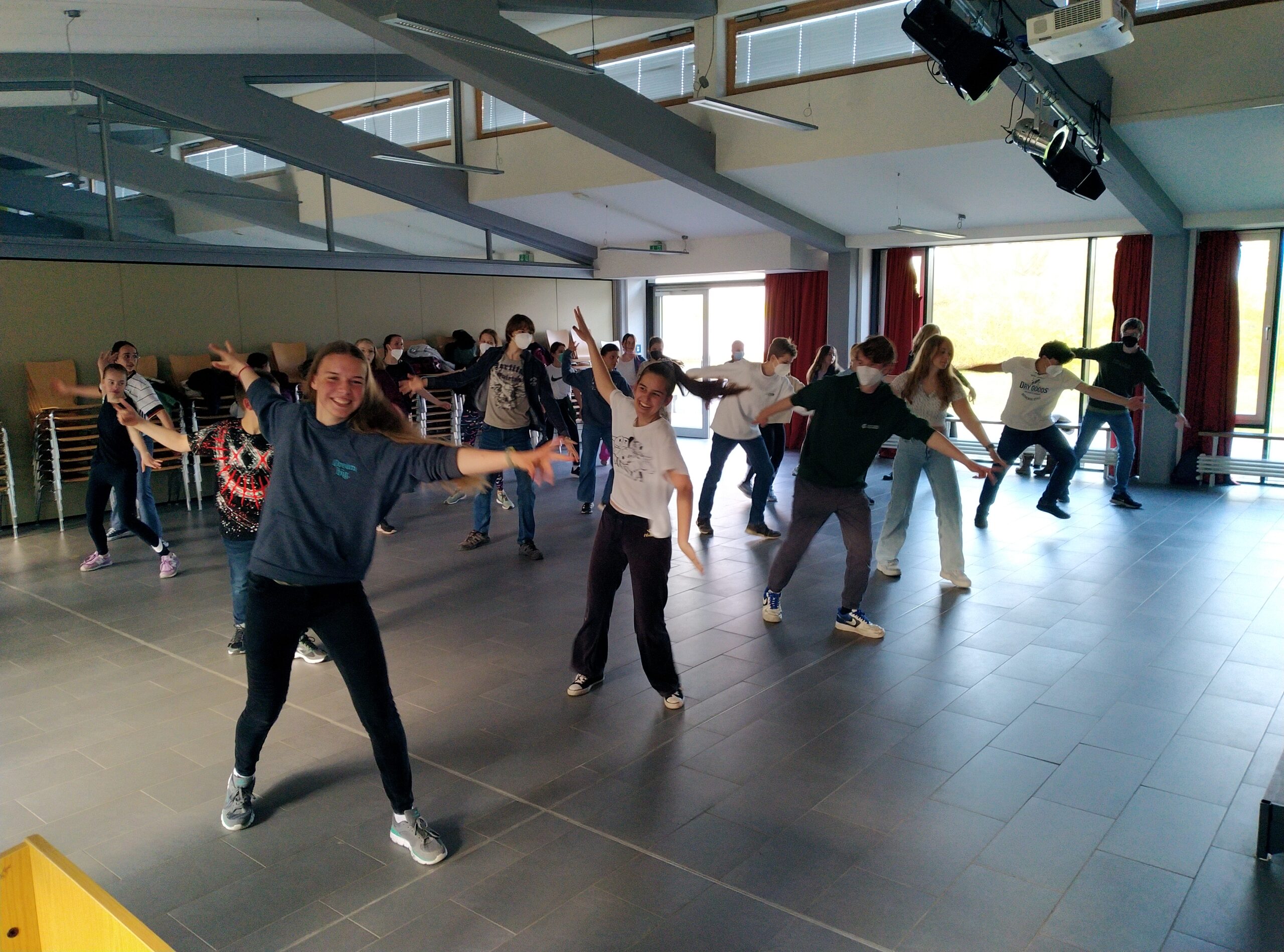 Dass die TMS keine langweilige Schule ist, in der man nur stumpf und still auf dem Stuhl sitzt, ist uns allen schon lange klar. Aber nach den langen, coronabedingten Einschränkungen sind das Soziale, die Bewegung, überhaupt viele Aktivitäten miteinander und in der Gruppe seltener geworden. Umso schöner ist es, dass jetzt nach den Osterferien endlich die Tanz-AG in der TMS starten durfte – nach langer Planung und coronabedingter Wartezeit. Viele Gespräche und Ideen waren schon vorher mit viel Vorfreude in dieses Projekt geflossen.
