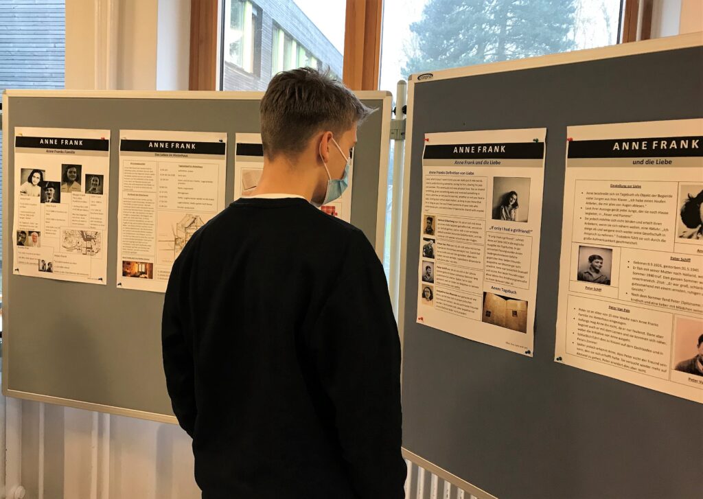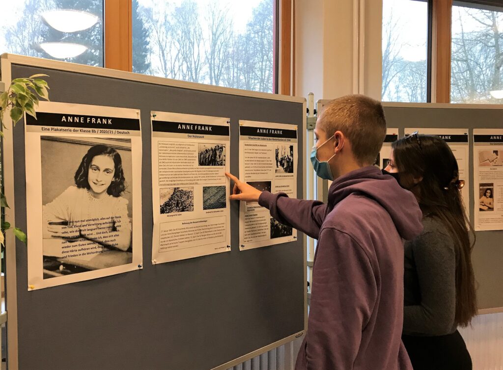 Die Geschichte dieses kurzen Lebens und die historischen Hintergründe waren Gegenstand des Deutschunterrichtes in der Klasse 8b, aus dem heraus die Plakatserie zu einzelnen Themen entstand. Die Ergebnisse des Projekts sind jetzt in der Europahalle zu sehen.