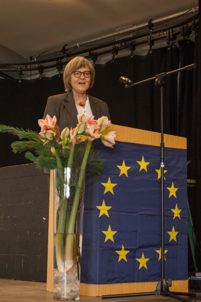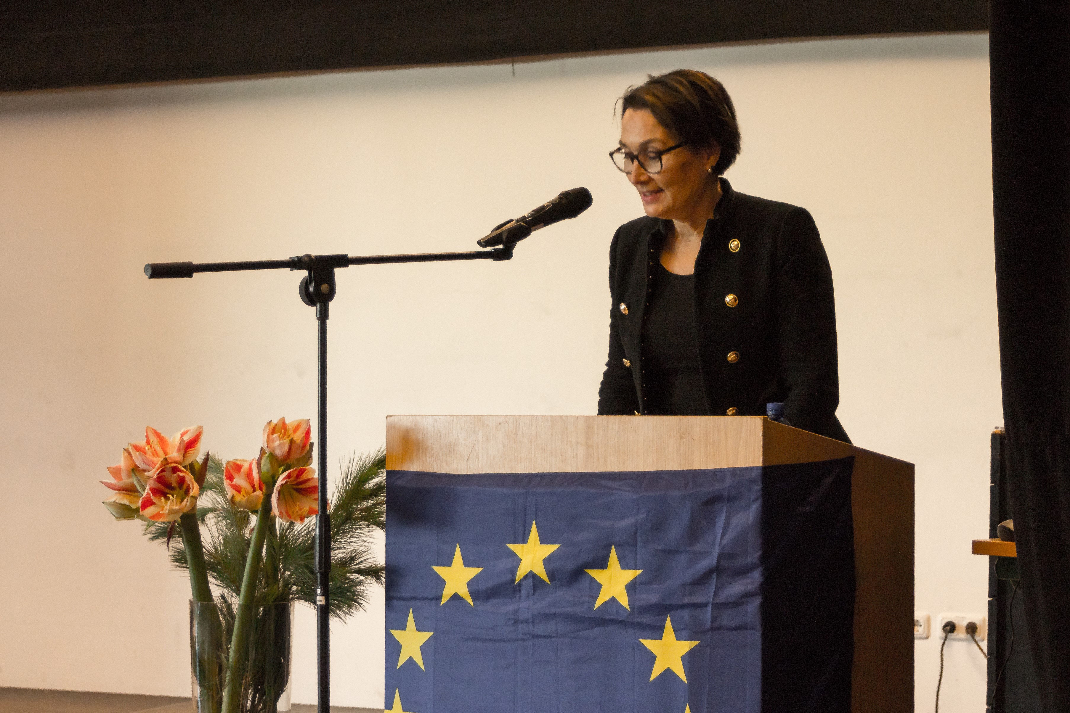 Den Höhepunkt der Feier bildete die Ansprache von Ulrike Rodust, die die vielfältigen europabezogenen Aktivitäten an unserer Schule, über die sie sich sehr genau informiert hatte, lobte. Sie drückte die Hoffnung aus, dass die Juniorbotschafter sich weiterhin für die Sache Europas einsetzen möchten.