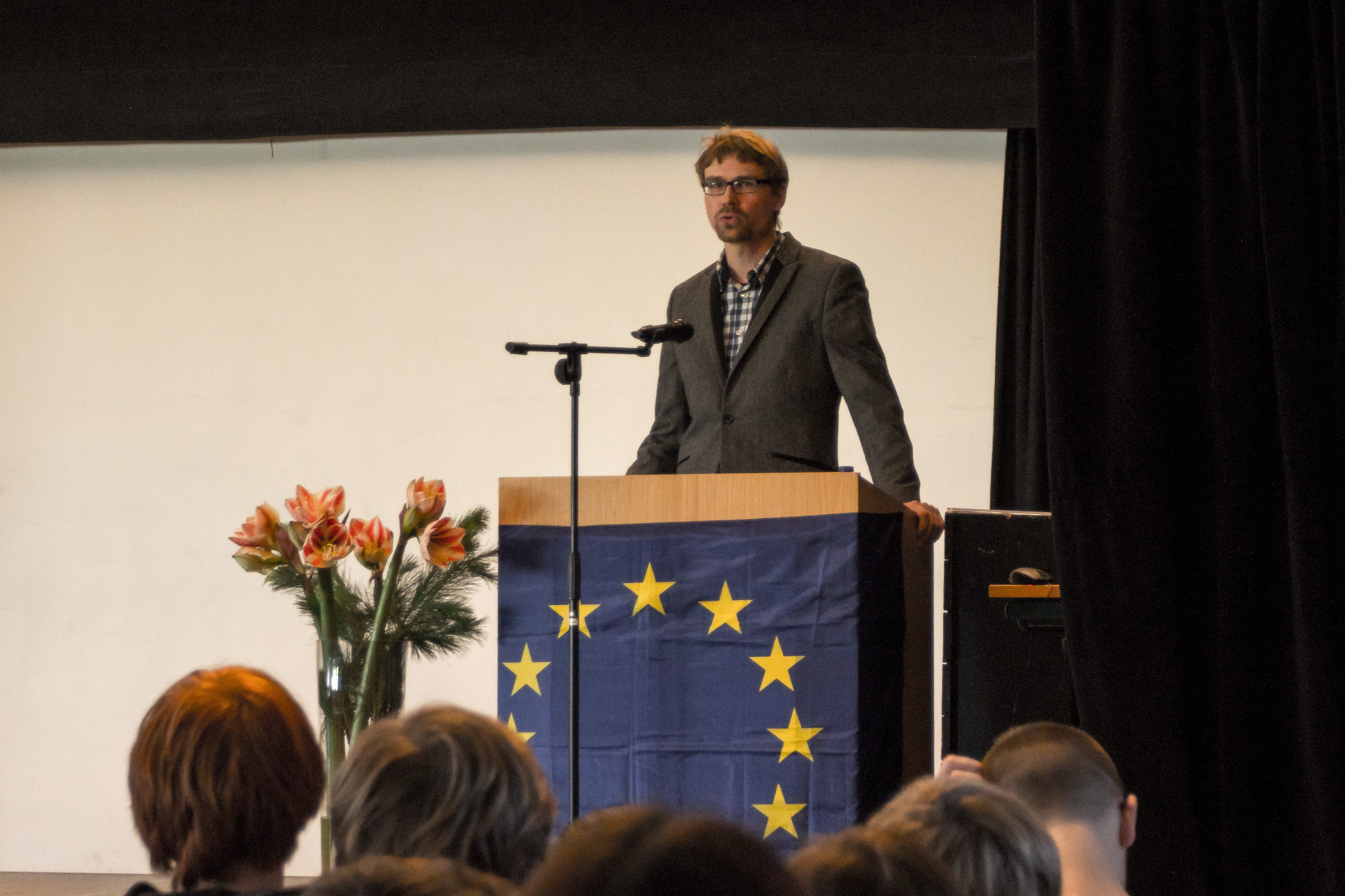 Seniorbotschafter Daniel Klingebiel lobte die Bereitschaft der Juniorbotschafter, sich für Europathemen einzusetzen, und ihre Eigeninitiative. Vieles sei von den Jugendlichen bereits erledigt worden, bevor er sie damit beauftragt habe.