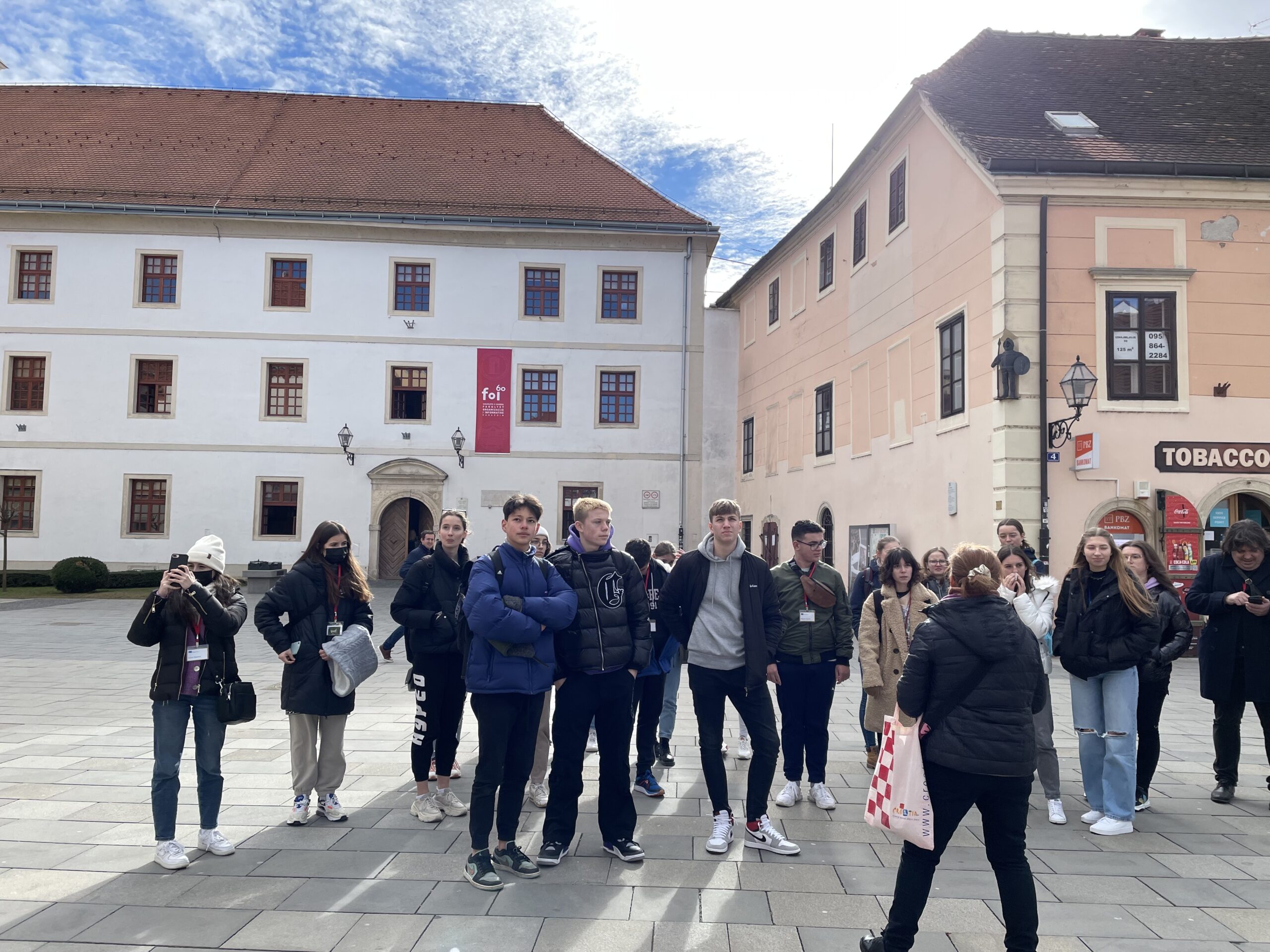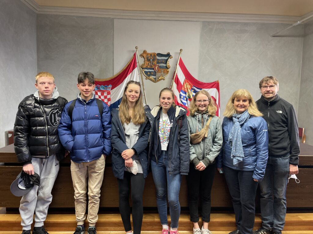 Im Rahmen des Erasmus+-Projekts „European Values“ haben wir uns am Sonntagmittag mit dem Zug auf den Weg Richtung Süden gemacht, genauer gesagt nach Kroatien, Varazdin. Nach einer Fahrt mit dem Nachtzug nach Zagreb und danach weiter mit dem Bus sind wir am Montagmorgen in der kleinen Stadt Varazdin angekommen. Varazdin liegt im Norden Kroatiens, am Fluss Drau. Nach unserer Ankunft gab es eine schöne, aber auch schnelle Begrüßung, bei der wir unseren Gastfamilien vorgestellt wurden. Für diesen restlichen Tag war kein weiteres Programm vorgesehen, denn die anderen am Projekt teilnehmenden Schülerinnen und Schüler aus Dänemark und Spanien erreichten erst im Laufe des Tages den Ort unseres Treffens. Nun trennten sich also unsere Wege. Nachdem wir alle gut in den Gastfamilien angekommen sind, wurde die Freizeit ganz unterschiedlich genutzt. Während einige Varazdin bereits erkundeten, spielten andere mit ihrer Gastfamilie Spiele oder trafen sich mit Freunden der Gastgeberinnen und Gastgeber sowie mit den spanischen Erasmus+-Teilnehmern. Am Abend dieses Tages sind alle Beteiligten recht müde ins Bett gegangen.