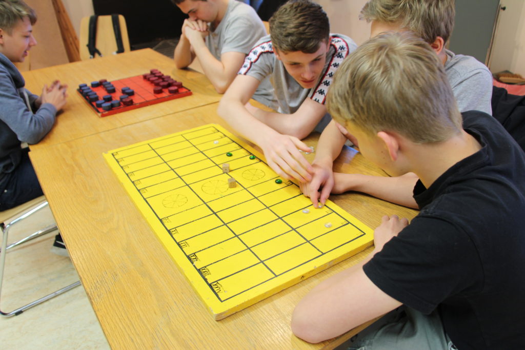 In der Zeit der Römer wurden einige Spiele gespielt, die heute noch auf ähnliche Weise gespielt werden. Es gab aber auch Spiele, die sich im Laufe der Zeit verändert haben. Es hat uns Spaß gemacht, bekannte Spiele in einer anderen Version zu spielen, so wie zum Beispiel „Mensch ärgere dich nicht“. In der Antike war es nur für zwei Spieler gemacht und es gab kein Häuschen zum Reinlaufen für die Spieler. Ein weiteres Spiel, das wir ausprobiert haben, welches sich bis heute kaum verändert hat, ist Mühle. Diese war jedoch rund und nicht viereckig.
