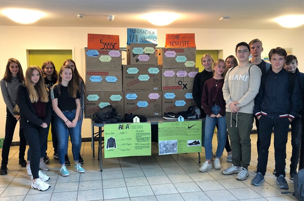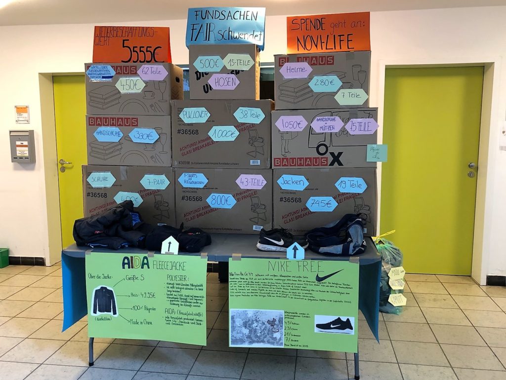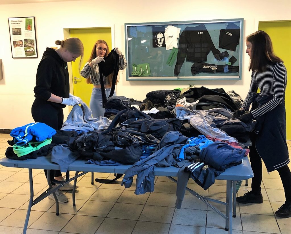 Am Fairtrade-Tag sortierten sie zunächst die Fundsachen. Danach recherchierten sie den Wiederbeschaffungswert der Kleidungsstücke und übrigen Gegenstände.