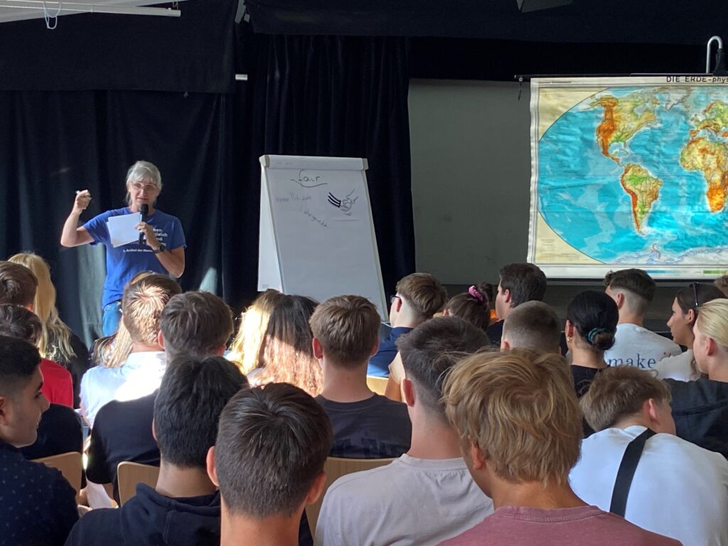 Die sichtbare Freude von Frau Langmaack an ihrem Engagement hat einige Schülerinnen und Schüler spontan dazu bewegt, ihre Mitarbeit für Aktivitäten der fairtrade-town Lübeck anzubieten. In der sich dem Vortrag anschließenden Arbeit in den Klassen wurde Ideen des fairen Handels dann weiter diskutiert.