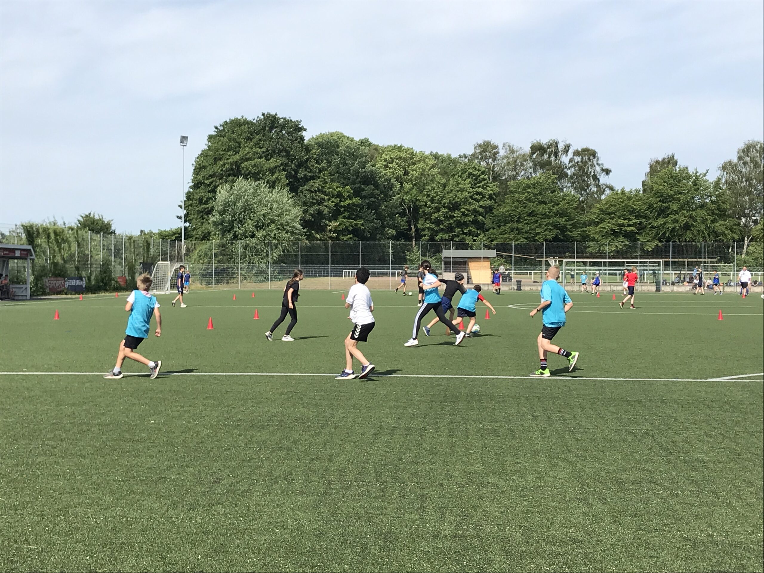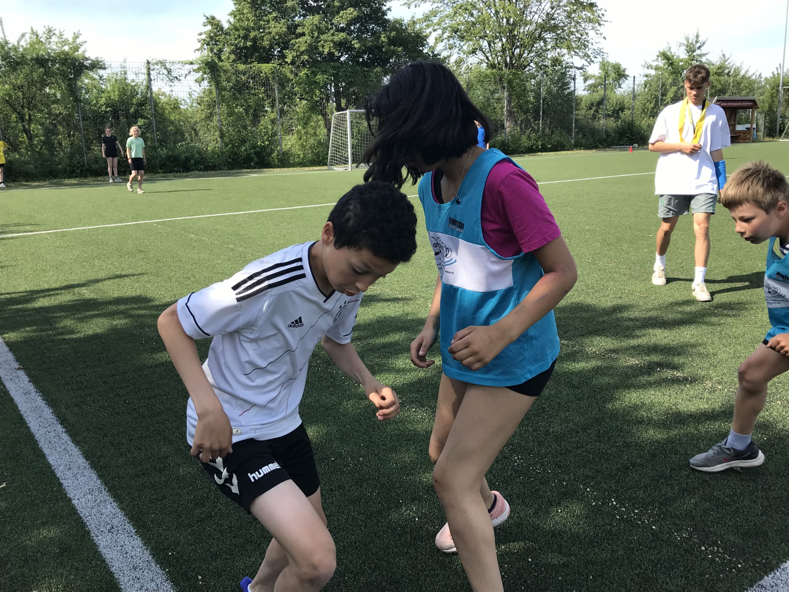 Um Fairplay und Fairtrade ging es bei den Schülerinnen und Schülern der Orientierungsstufe. Nachdem sie sich in den ersten beiden Stunden mit der Herstellung von Fußbällen beschäftigt hatten, nahmen sie an einem Fußballturnier teil, das das Sportprofil des Q1-Jahrganges organisiert hatte.