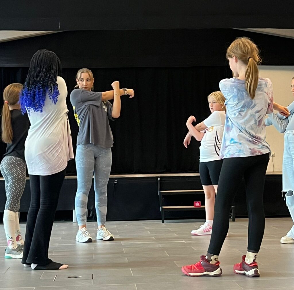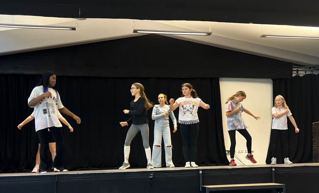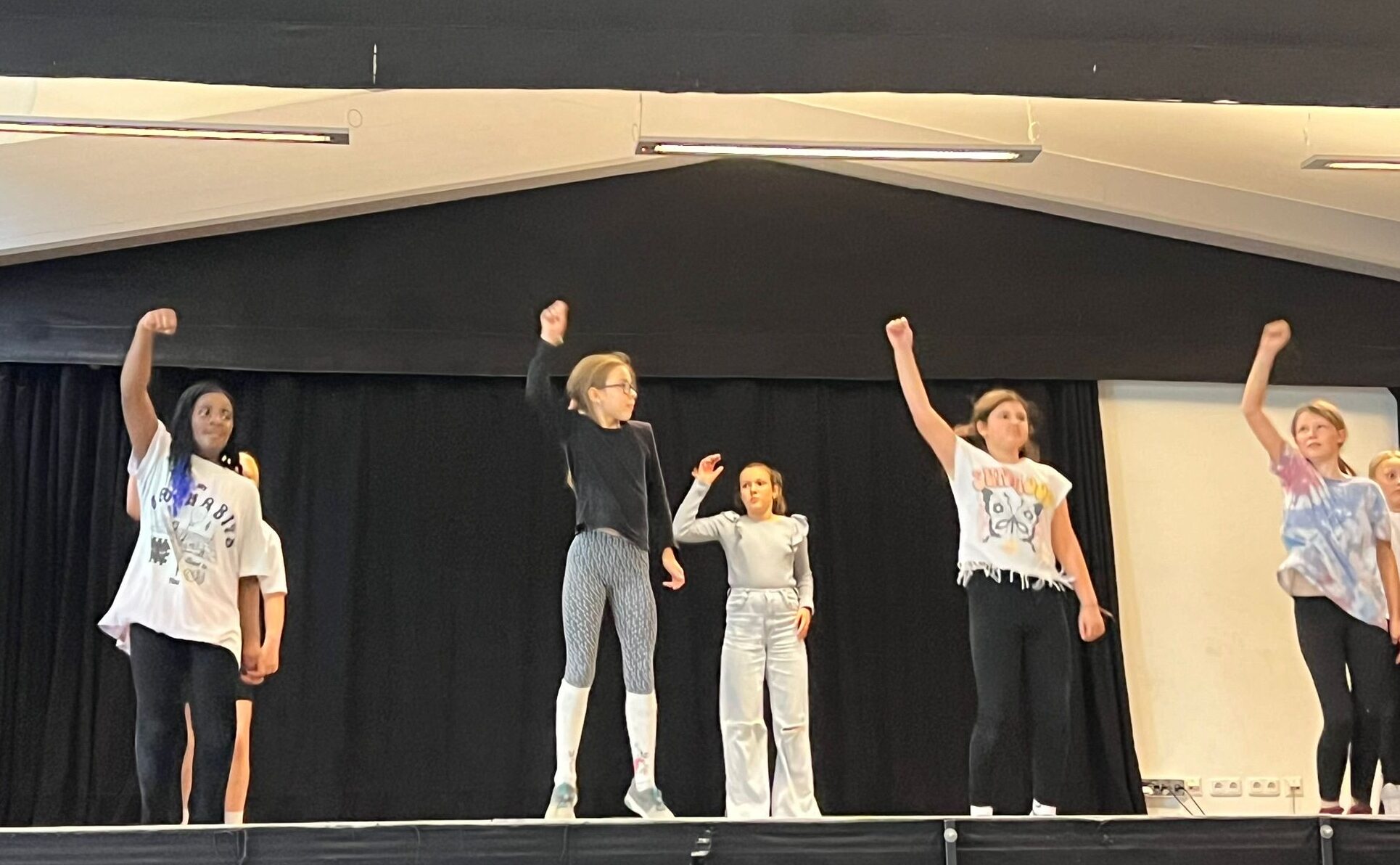 Zu dem bekannten Hit „Salt“ von Ava Max üben die Fünft- bis Siebtklässlerinnen eine Choreografie ein. Angeleitet von Trainerin Celina proben sie jeden Donnerstag in der 7. und 8. Stunde in der Aula.