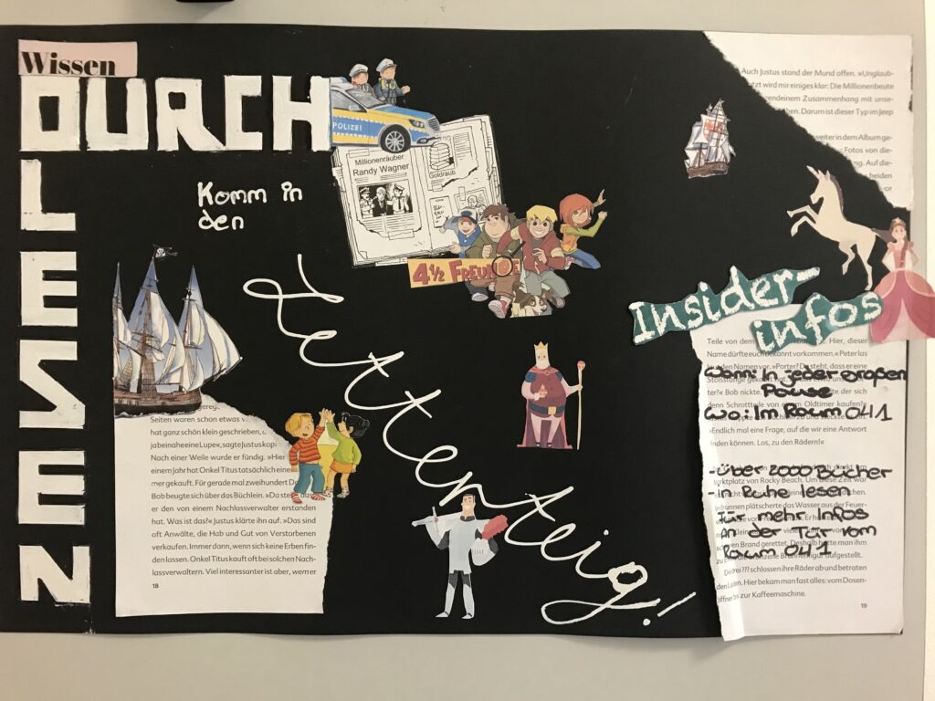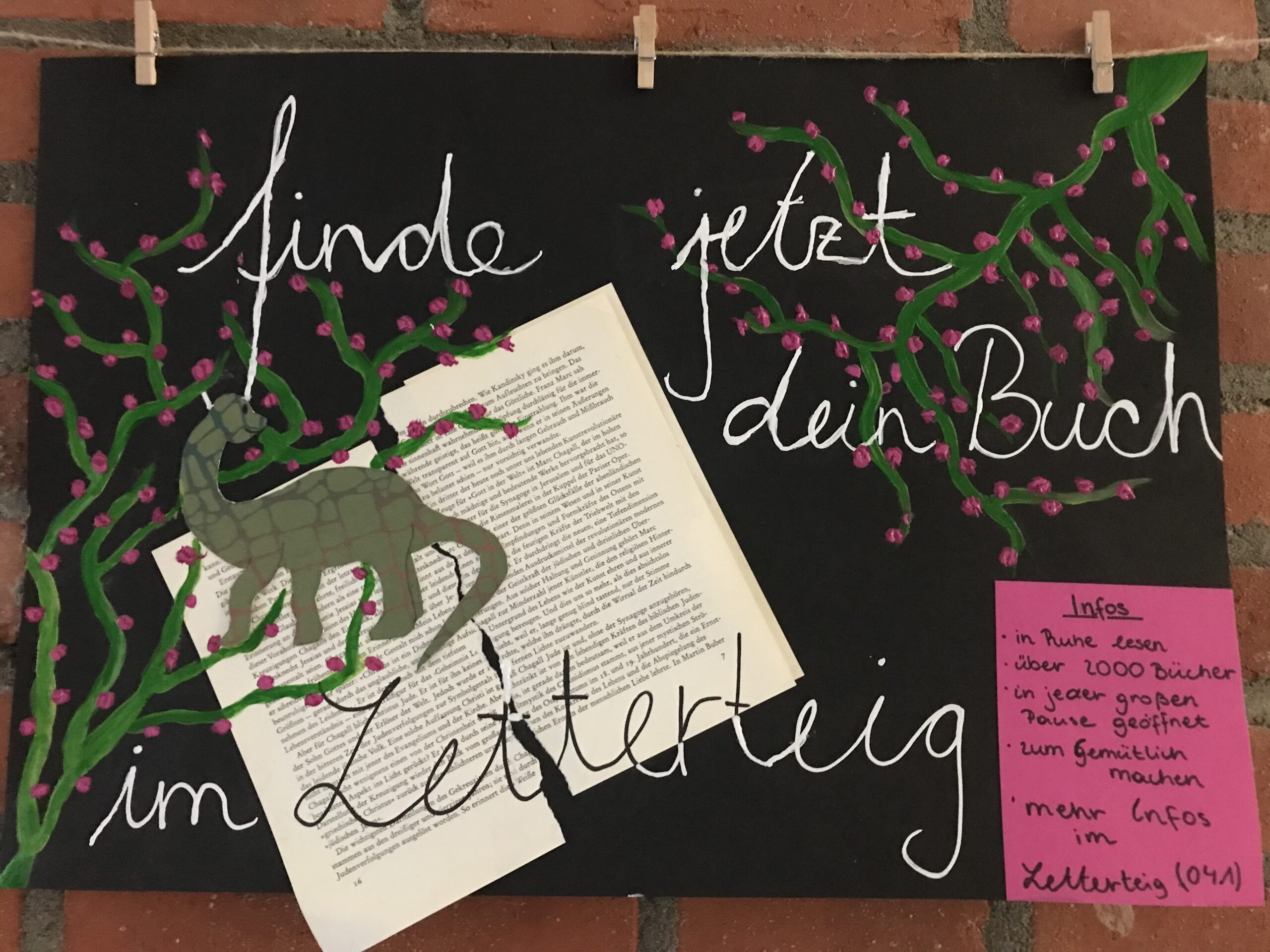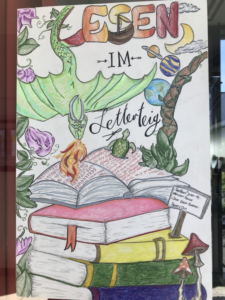 Mit wunderschön gestalteten Plakaten laden die Schülerinnen und Schüler der Klasse 9d euch in den Letterteig, unsere Schülerbibliothek, ein.