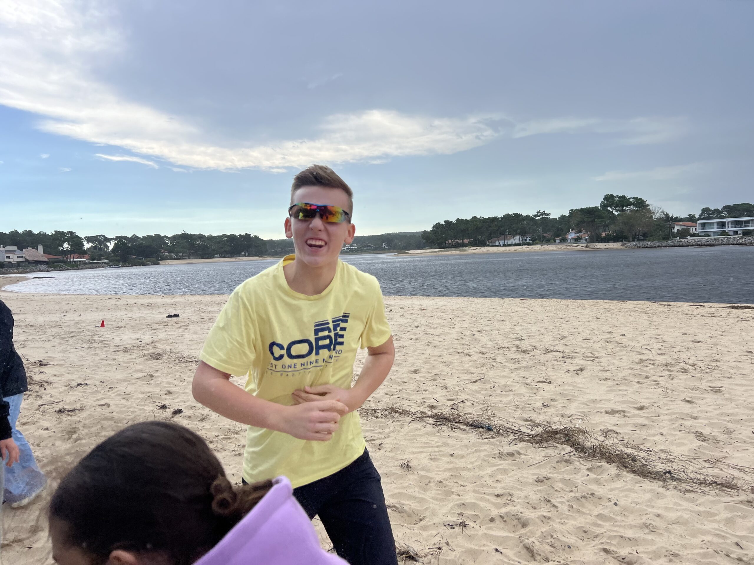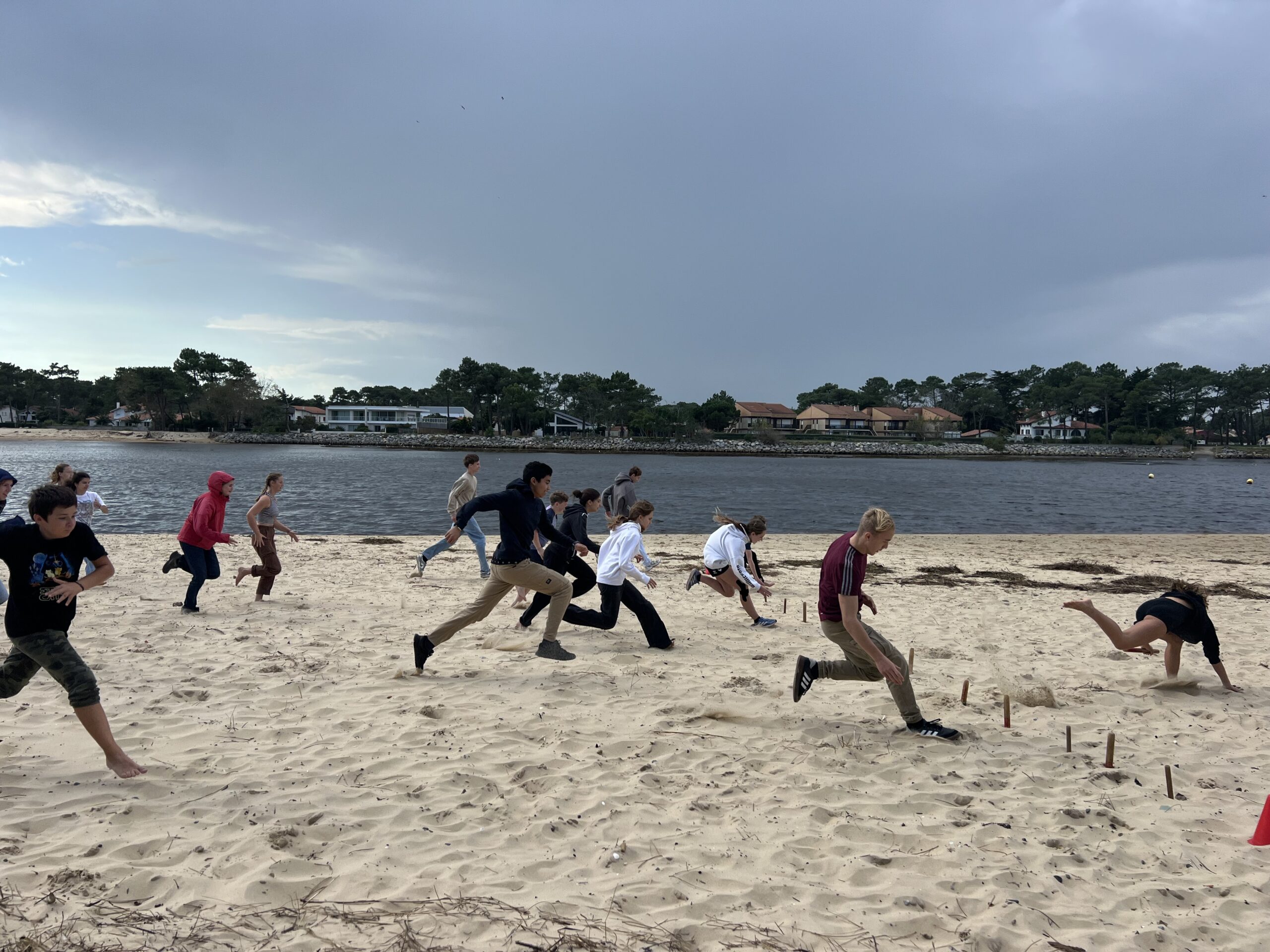Als wir dort ankamen, haben sich einige von uns hingesetzt, andere haben Volleyball oder Fußball gespielt, bis die Lehrer uns alle zusammengerufen haben, um ein Spiel zu spielen. Viele sind dabei sehr oft in den Sand gefallen, weil man schnell am Strand laufen musste, das war sehr lustig.