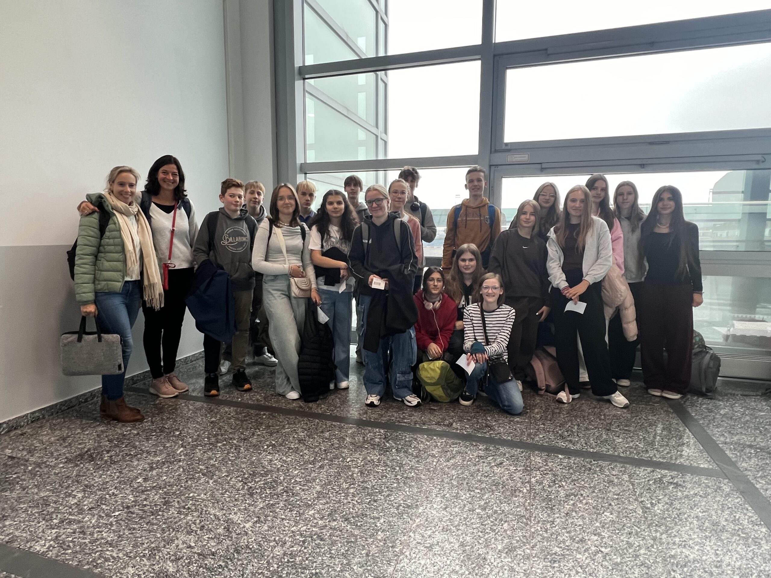 Am Montag, dem 7.10.2024 ging unsere Reise los. Das Treffen war um 9 Uhr am Terminal 2 des Hamburger Flughafens. Der Tag startete regnerisch. Fast alle Schüler waren pünktlich, nur eine Person kam etwas zu spät. Das Einchecken dauerte sehr lange, weil dies nur am Automaten möglich war und alle Passagiere einzeln eingecheckt werden mussten. Nach einer gefühlten Ewigkeit hatten dann alle ihre Tickets. Anschließend wurden unsere Koffer abgegeben. Dann gingen wir weiter zu der Sicherheitskontrolle. Die Kontrolle ging sehr schnell im Vergleich zum Einchecken. Nach etwas Freizeit am Flughafen waren alle um spätestens 11:45 am Gate. Das Boarding für den Flug begann um 12:00 Uhr. Der Flug flog ohne Verspätung los, um 13:15 sind wir dann in München gelandet. Später sind wir dann weiter nach Bordeaux geflogen, wo wir schließlich um 18:00 Uhr angekommen sind. Am Flughafen von Bordeaux wurden wir von den Gastfamilien begrüßt und anschließend zu ihnen nach Hause gebracht. Manche brauchten länger andere weniger Zeit um zu den Gastfamilien zu kommen aber um 20:00 Uhr waren die meisten dann angekommen und haben alle zusammen Abendessen gegessen. Nach diesem anstrengenden Tag sind wir direkt ins Bett gegangen.