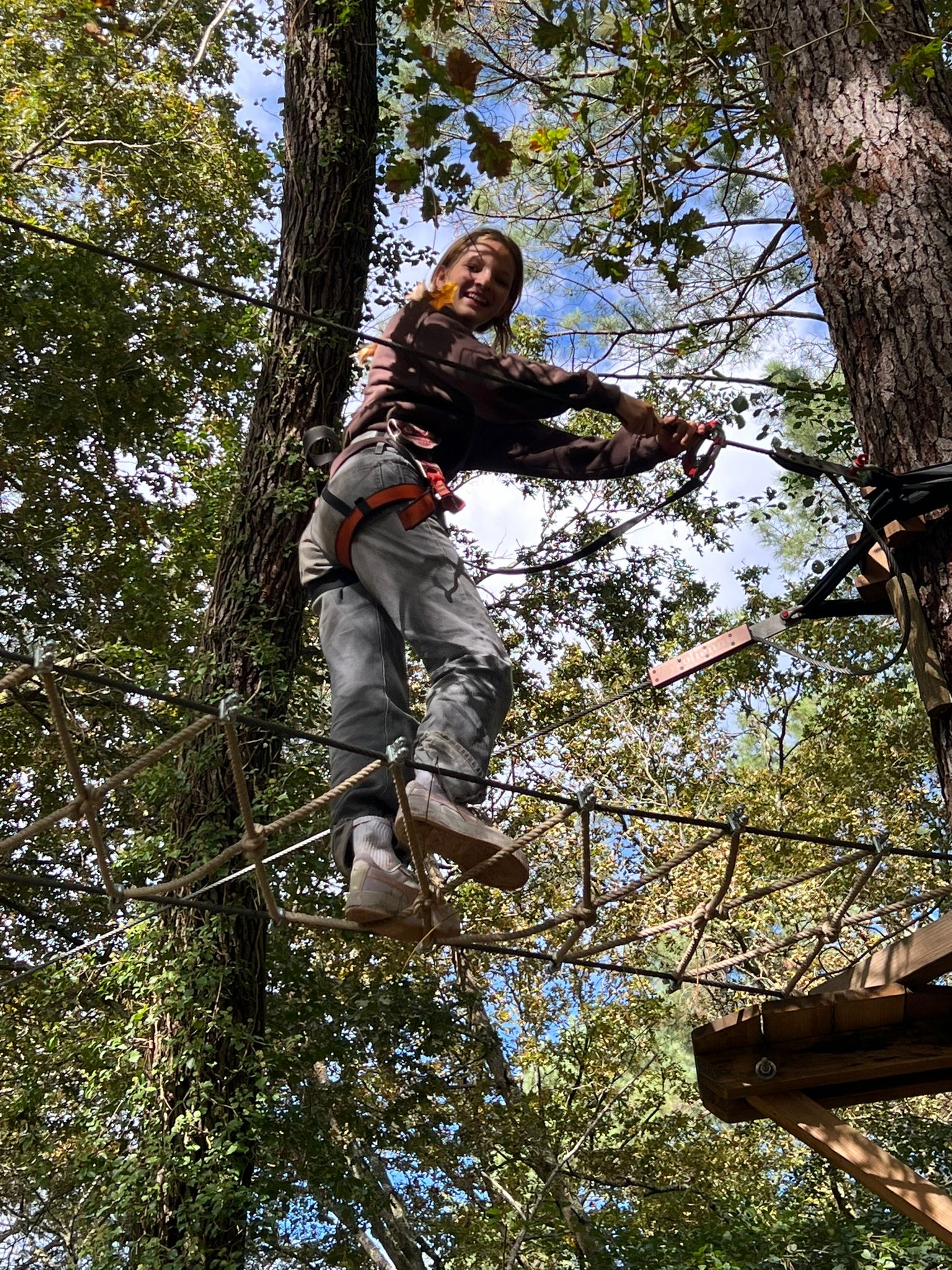 Im Kletterpark angekommen haben wir die Kletterausrüstung angezogen und bekamen eine Einführung.