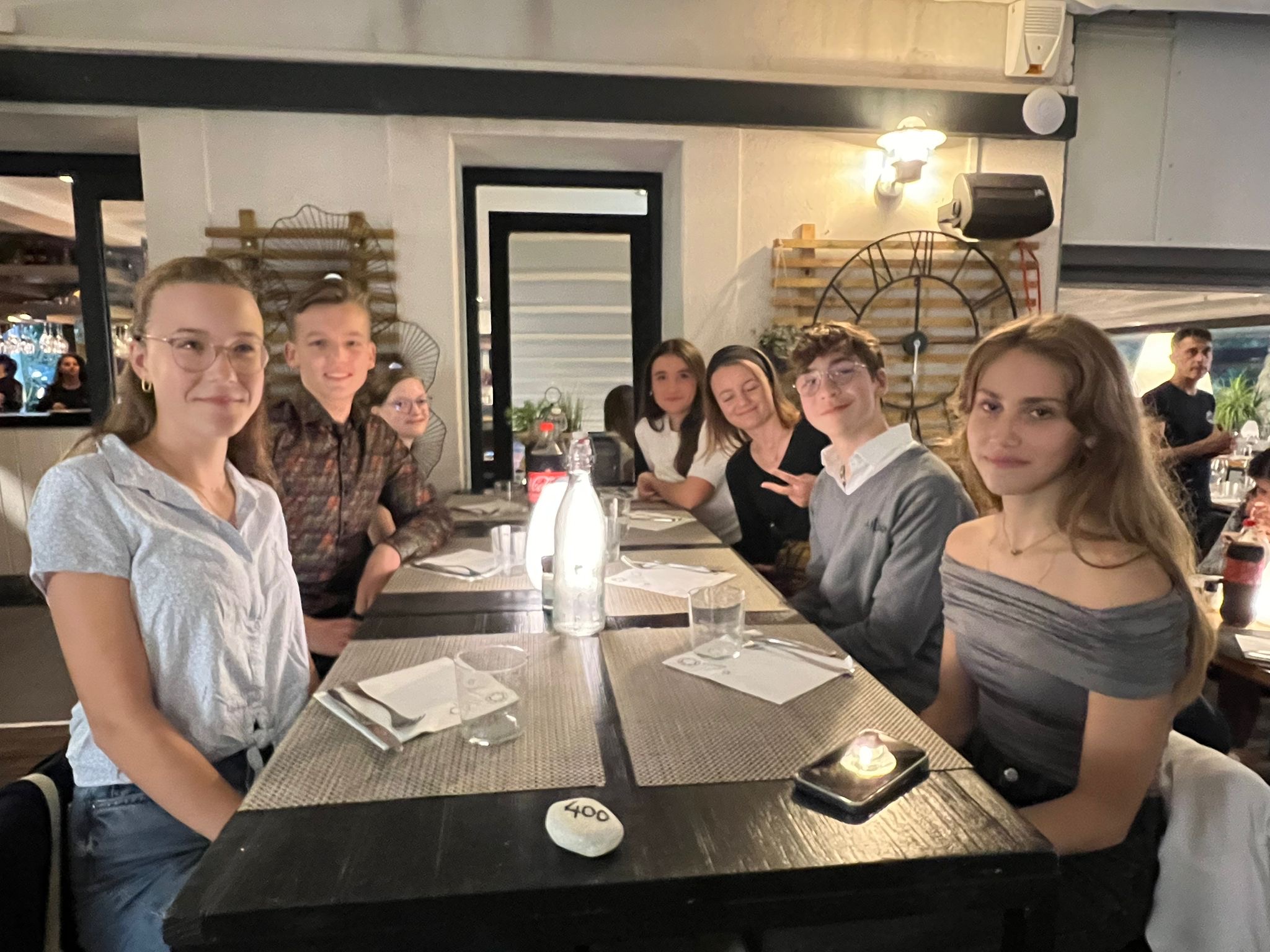Im Restaurant haben wir uns alle mit unseren Austauschpartnern und Freunden an die Tische gesetzt und uns viel unterhalten.