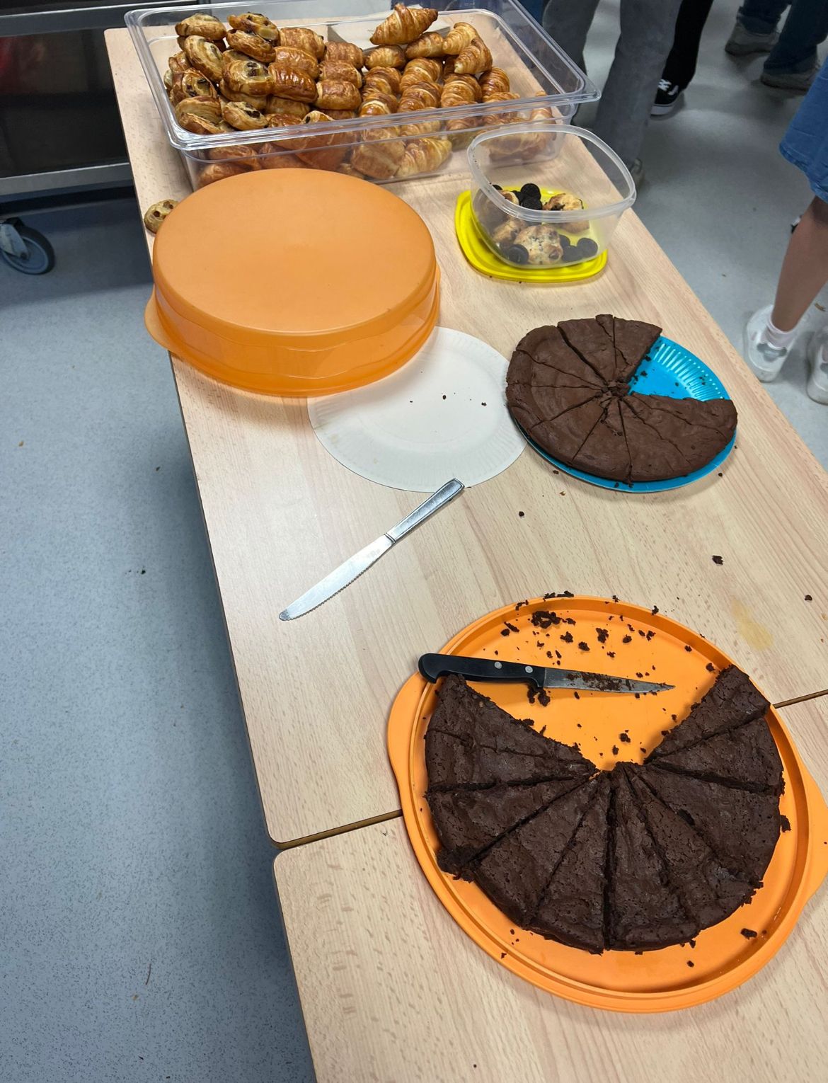 Am Dienstag sind wir früh aufgestanden, um uns dann um 8:00 Uhr mit den Lehrern an der französischen Schule „Collège Aliénor d´Aquitaine“ zu treffen. Zuerst haben wir uns alle in der Aula versammelt, dort hat der französische Schulleiter eine kleine Rede gehalten. In der Aula war ein kleines Buffet aufgebaut mit Kuchen, Croissants und anderen französischen Spezialitäten.