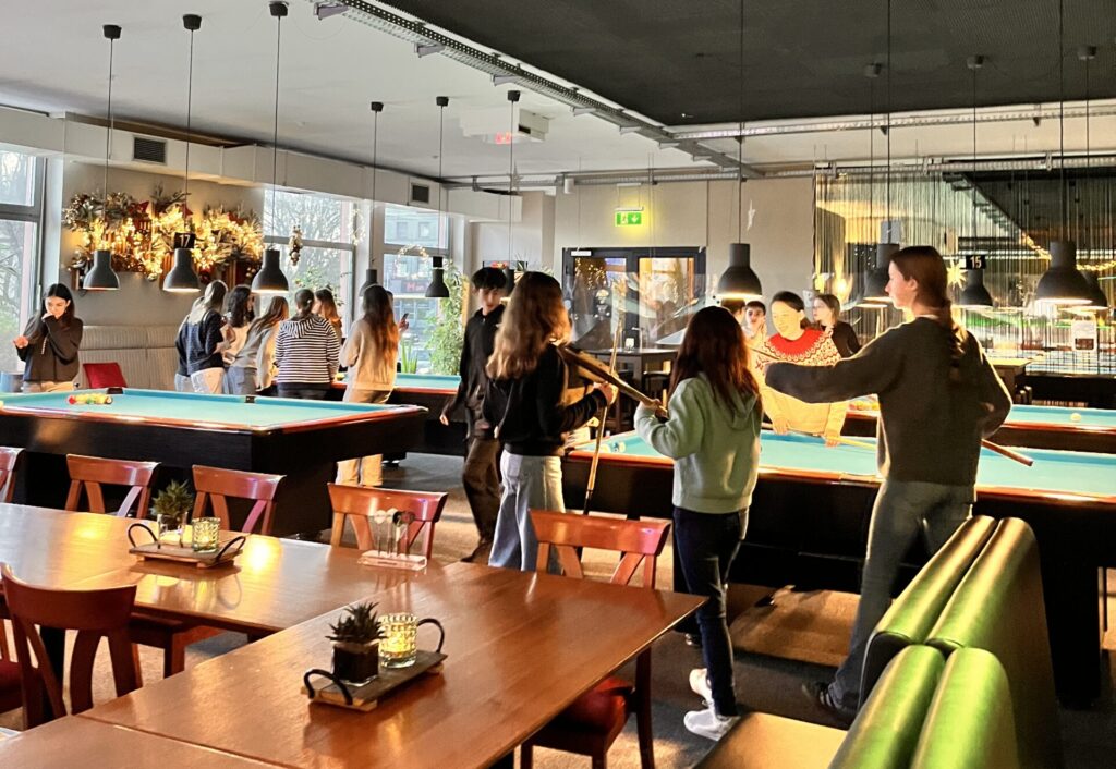 Am Nachmittag hatten wir von 14:00 bis 15:30 Uhr Freizeit in Lübeck. Viele nutzten die Zeit, um ihren Gästen die Stadt zu zeigen, ein wenig herumzuschlendern oder einfach zu reden. Danach trafen wir uns alle wieder im Billardcafé in der Kanalstraße 108. Von 15:30 bis 17:00 Uhr spielten wir zusammen Billard, was nicht nur Spaß machte, sondern auch eine perfekte Gelegenheit war, sich weiter kennenzulernen. Um 17:00 Uhr endete das offizielle Programm, und am Abend verbrachten die Austauschpartner erneut Zeit in den Familien – beim Essen, Spielen oder einfach beim gemeinsamen Entspannen.