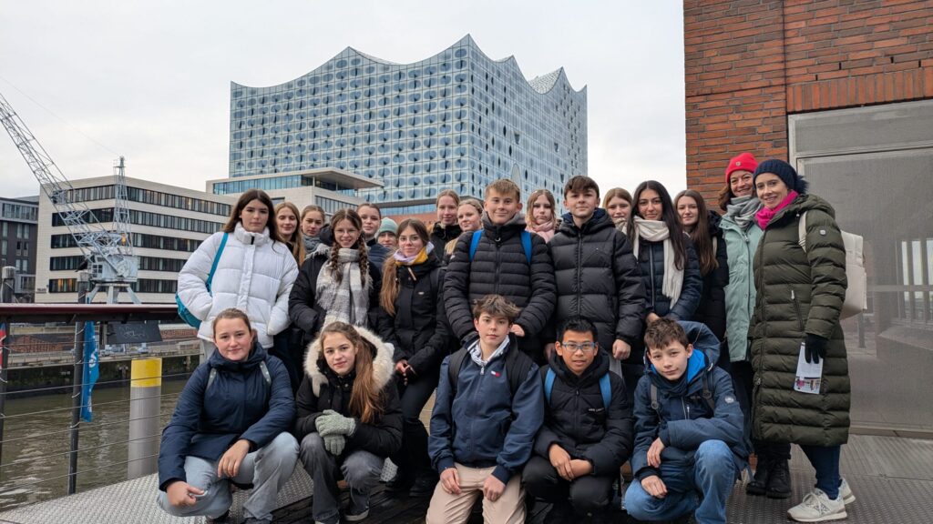 Bei der Stadtführung besichtigten wir bekannte Bauwerke wie das Rathaus und die historische Hamburger Speicherstadt und konnten viel über die Geschichte Hamburgs erfahren. Danach trafen wir die Franzosen wieder und besichtigten die Elbphilharmonie.