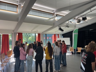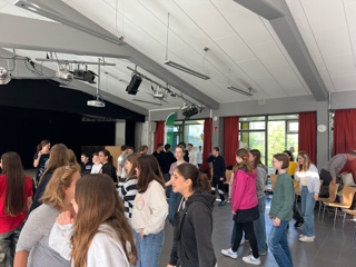 Als Nächstes haben wir dann Kennenlernspiele mit den Franzosen gemacht. Danach hatten wir dann Zeit, um uns etwas vom kleinen Buffet zu nehmen und unseren Austauschpartnern die Schule zu zeigen.