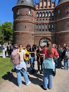 Als wir dann nach der Besichtigung des St. Petri Turmes zum Holstentor gingen, wurde schon darüber gerätselt, was wir wohl als Nächstes machen würden. Ein wenig später kamen wir am Holstentor an, wo erstmal ein paar Fotos gemacht wurden.