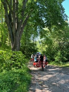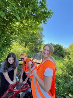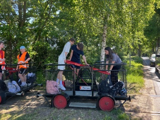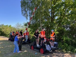 Unser erstes geplantes Treffen fand bei der Auswechselung zwischen den Fahrrädern und dem Drachenboot statt. Es war sehr lustig, da es sich um Rundfahrräder handelte. Mit den Fahrrädern mussten wir auch Straßen überqueren. Mit 20 Minuten Verspätung traf auch die 1. Gruppe ein. Viel Freude hat es uns allen dabei gemacht, die anderen Draisine-Gruppen einzuholen.