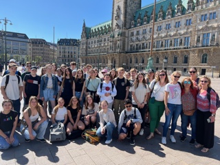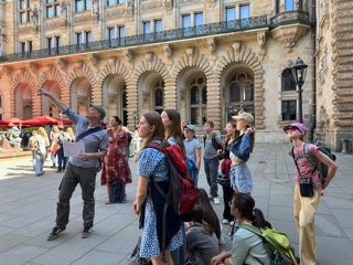 Nach einer entspannten Zugfahrt kamen wir in Hamburg an. An der Binnenalster wurden wir von einem Stadtführer abgeholt. Als ersten Stopp hatten wir den Rathausmarkt, wo uns erklärt wurde, dass es in Hamburg verboten sei, Schwäne zu beleidigen und anzufassen.
