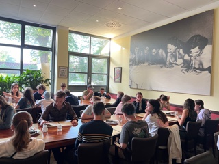 Danach hatten die Franzosen eine Stunde Zeit, um in unserem Unterricht zu hospitieren. Anschließend haben wir in der Mensa Mittag gegessen und von da aus ging es dann in die Stadt.