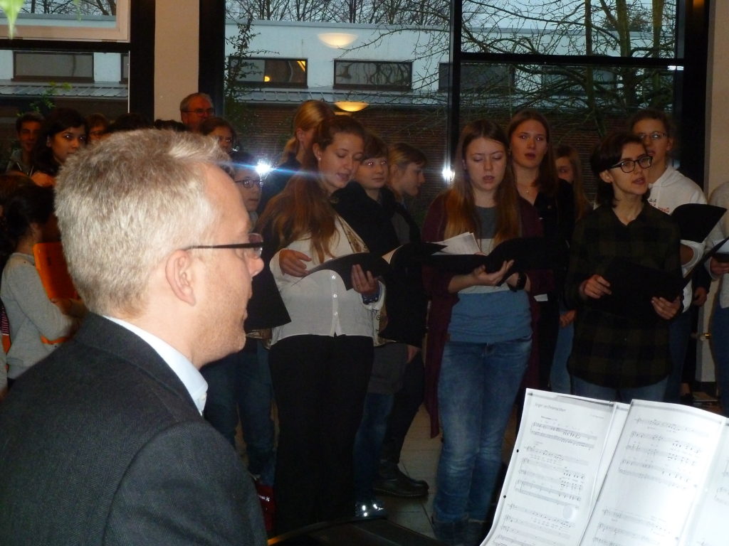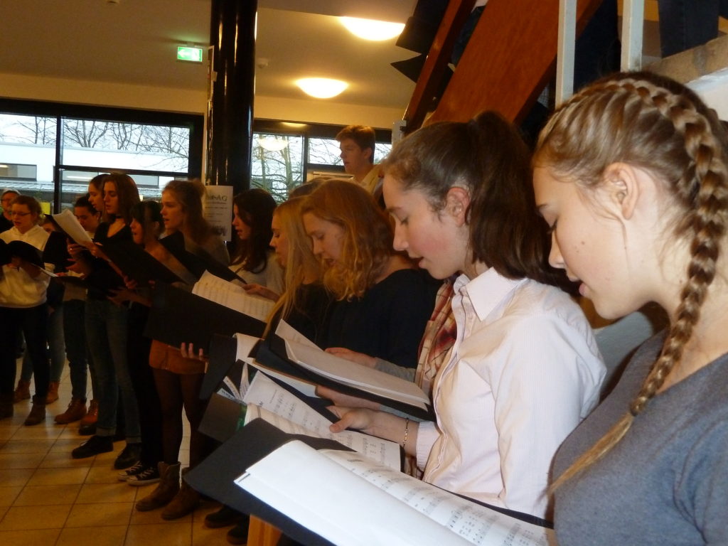 Auch in diesem Jahr bescherten Unter- und Oberstufenchor eine musikalische Einstimmung auf die Feiertage und einen schönen Jahresausklang für die Schulgemeinschaft. Beim traditionellen Gängesingen machen die Sängerinnen und Sänger in allen Schulfluren Station, die Klassenzimmertüren gehen auf und Schüler wie Lehrkräfte erfreuen sich an den Darbietungen unterschiedlicher Weihnachtslieder.