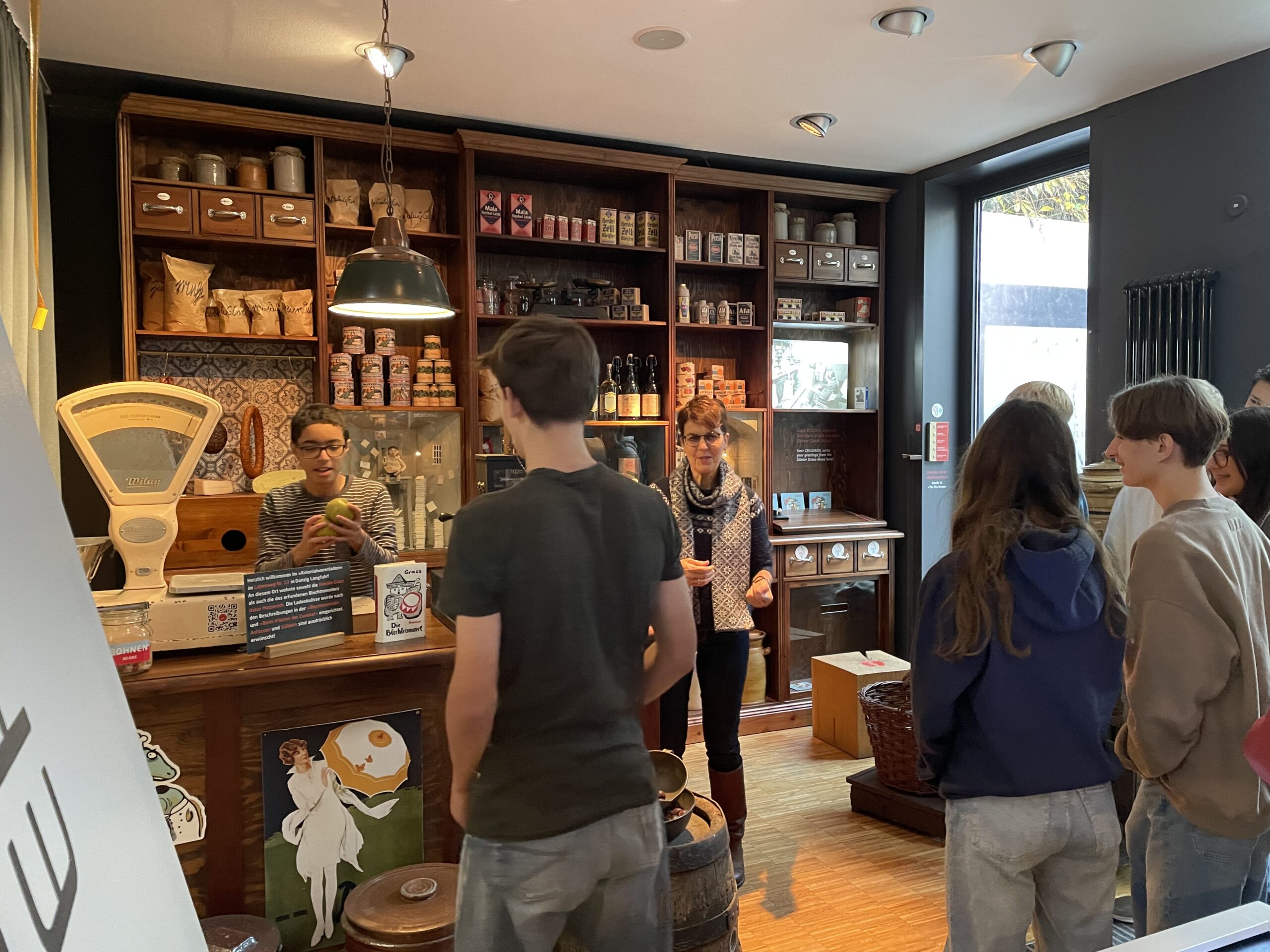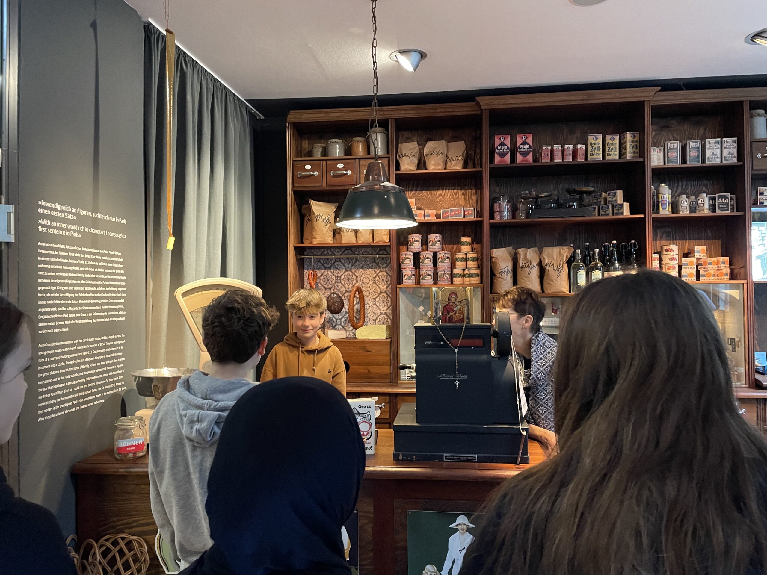 Im nächsten Ausstellungsraum steht ein kleiner Kolonialwarenladen, der dem aus dem Roman „Die Blechtrommel“ nachgebildet ist. Man kann die Waren nicht nur betrachten, sondern auch fühlen und riechen. Solch ein Geschäft betrieben auch Günter Grass´ Eltern in Danzig, wo er während der Zeit des Nationalsozialismus aufwuchs. Nach dem Krieg zog die Familie nach Westdeutschland.