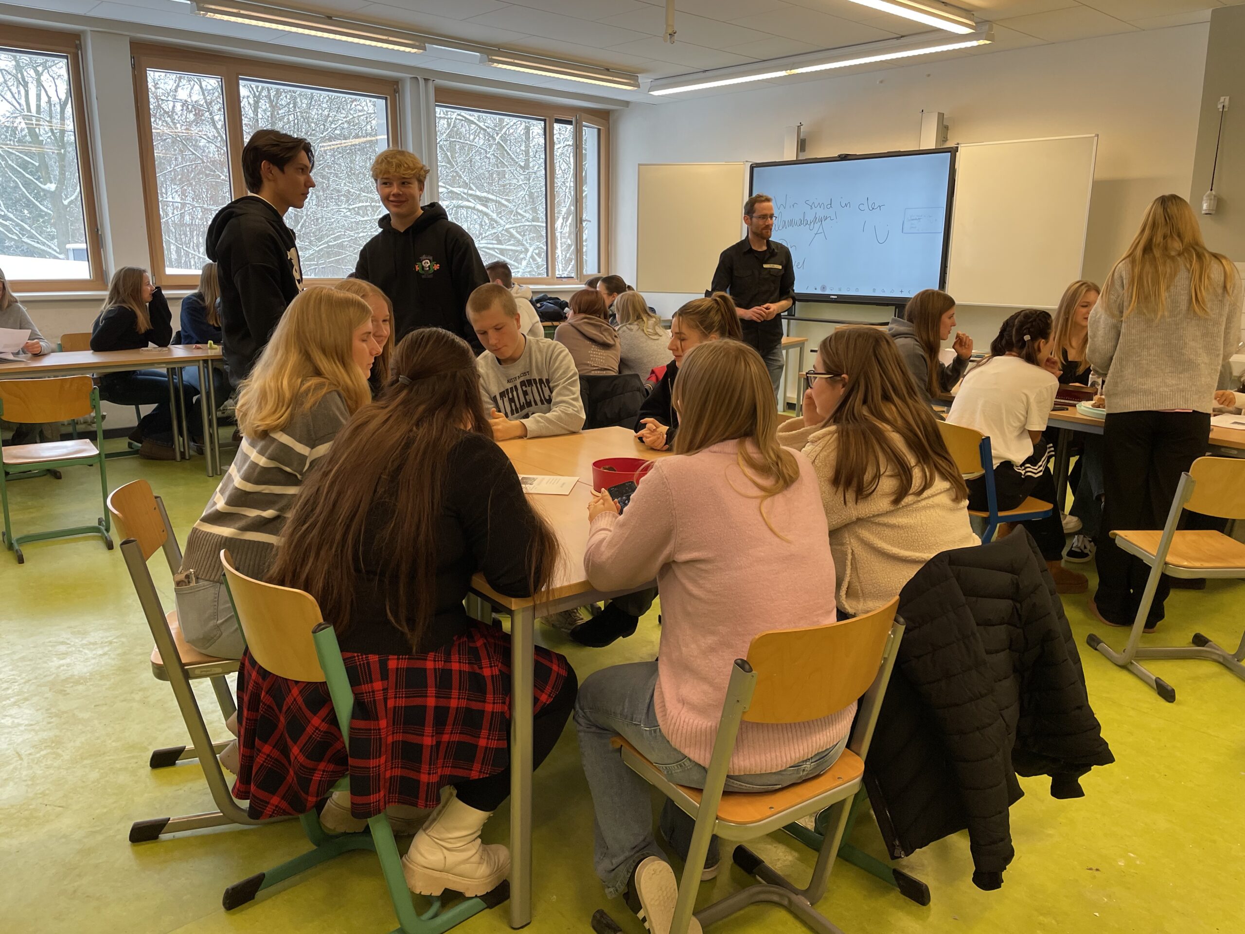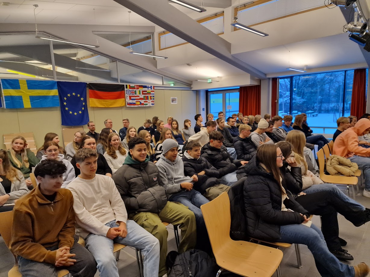 Danach haben die schwedischen Schüler eine kleine Präsentation über ihre Schule und Heimatstadt gehalten. Das war sehr interessant, weil wir dann schon mal einen Eindruck bekommen konnten, wie sie in Schweden leben.