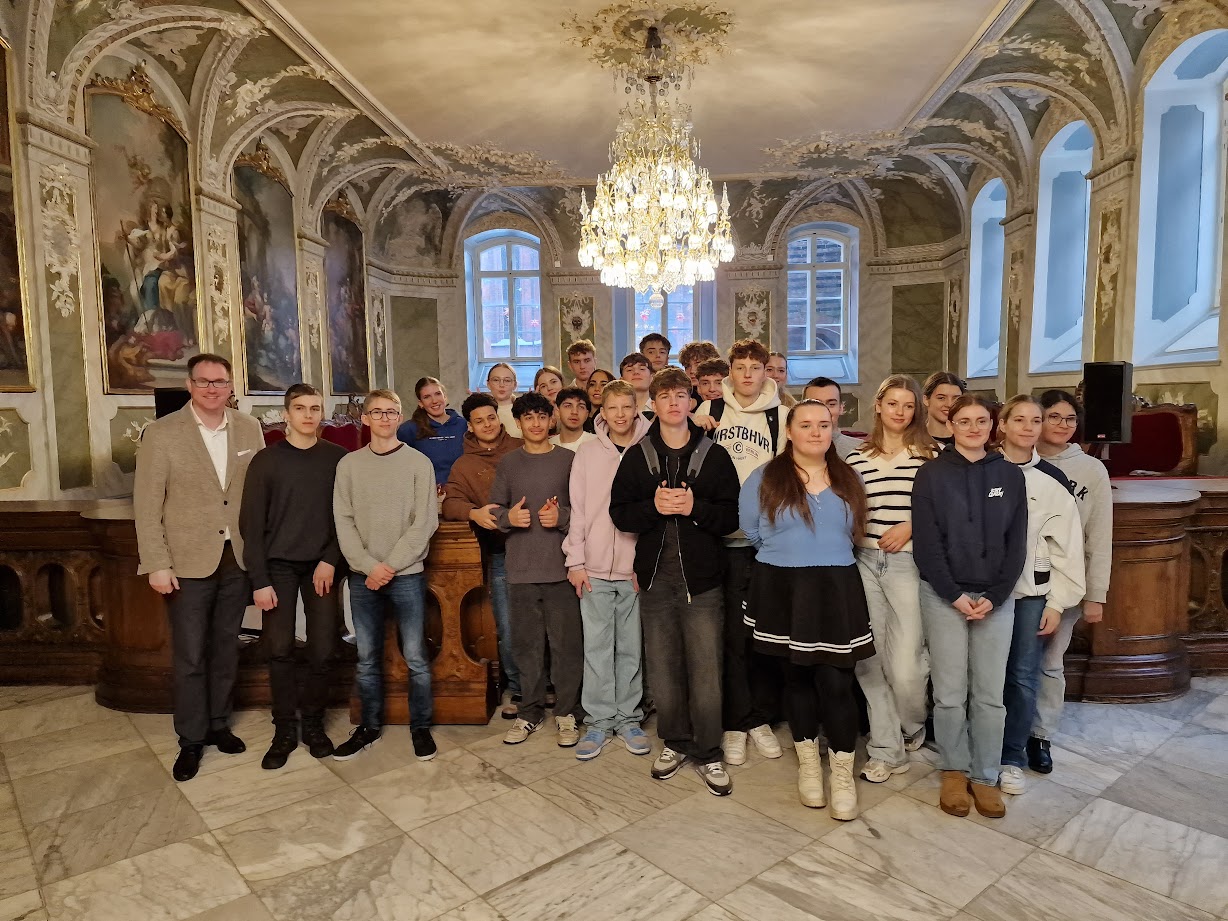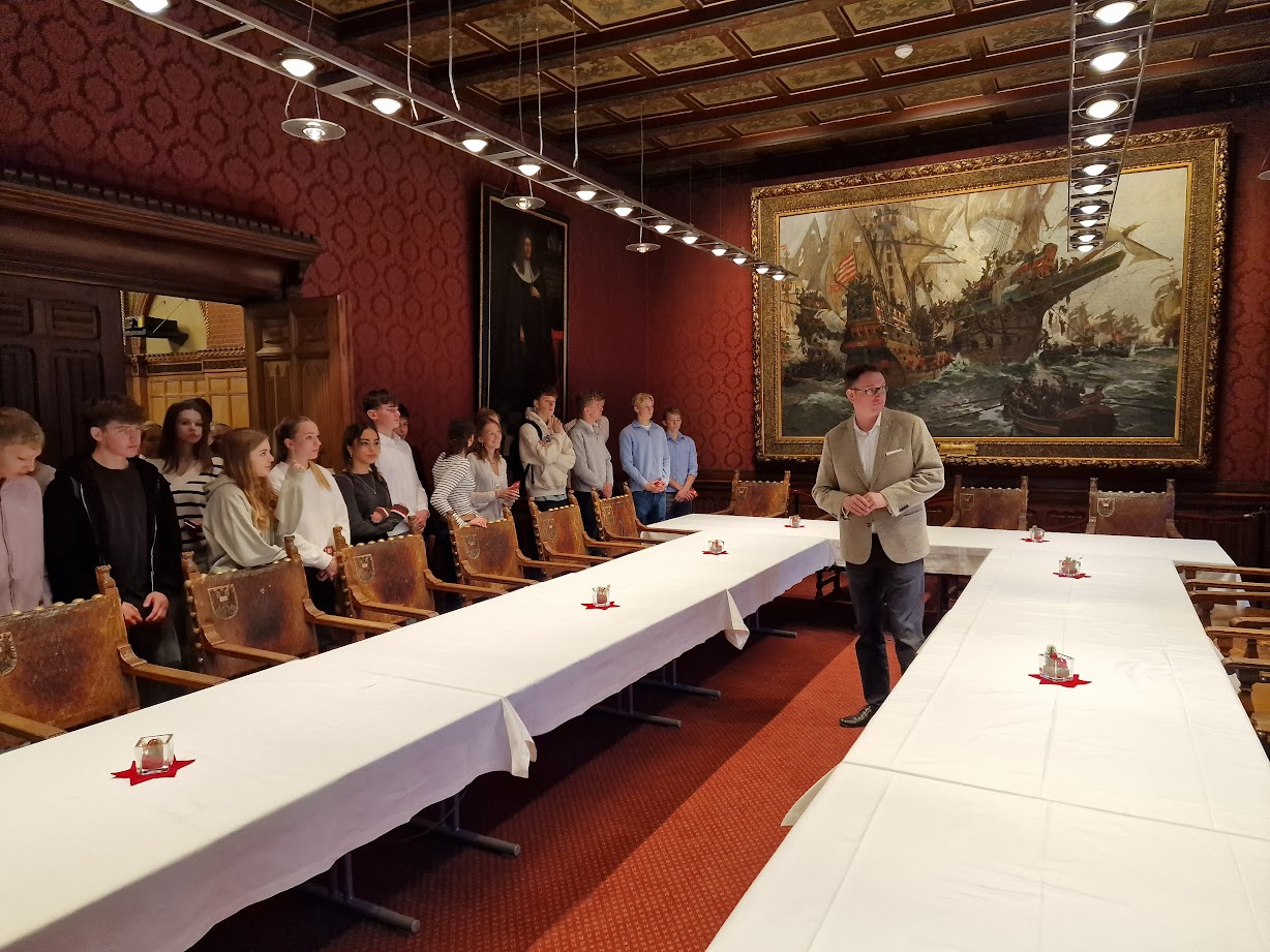 und ein Empfang im Rathaus durch Bürgermeister Jan Lindenau an, wo wir mit Getränken und Geschenken überrascht wurden. Nach einer kurzen Rede von Herrn Lindenau durften wir Fotos machen. Er führte uns selbst durch seinen Amtssitz, den ältesten, der seit dem Mittelalter in dieser Funktion genutzt wird. Wir waren sehr überrascht, dass wir so viel Kontakt zu ihm hatten und er sich für uns und unsere Austauschpartner so viel Zeit genommen hat, worüber wir uns sehr gefreut haben.