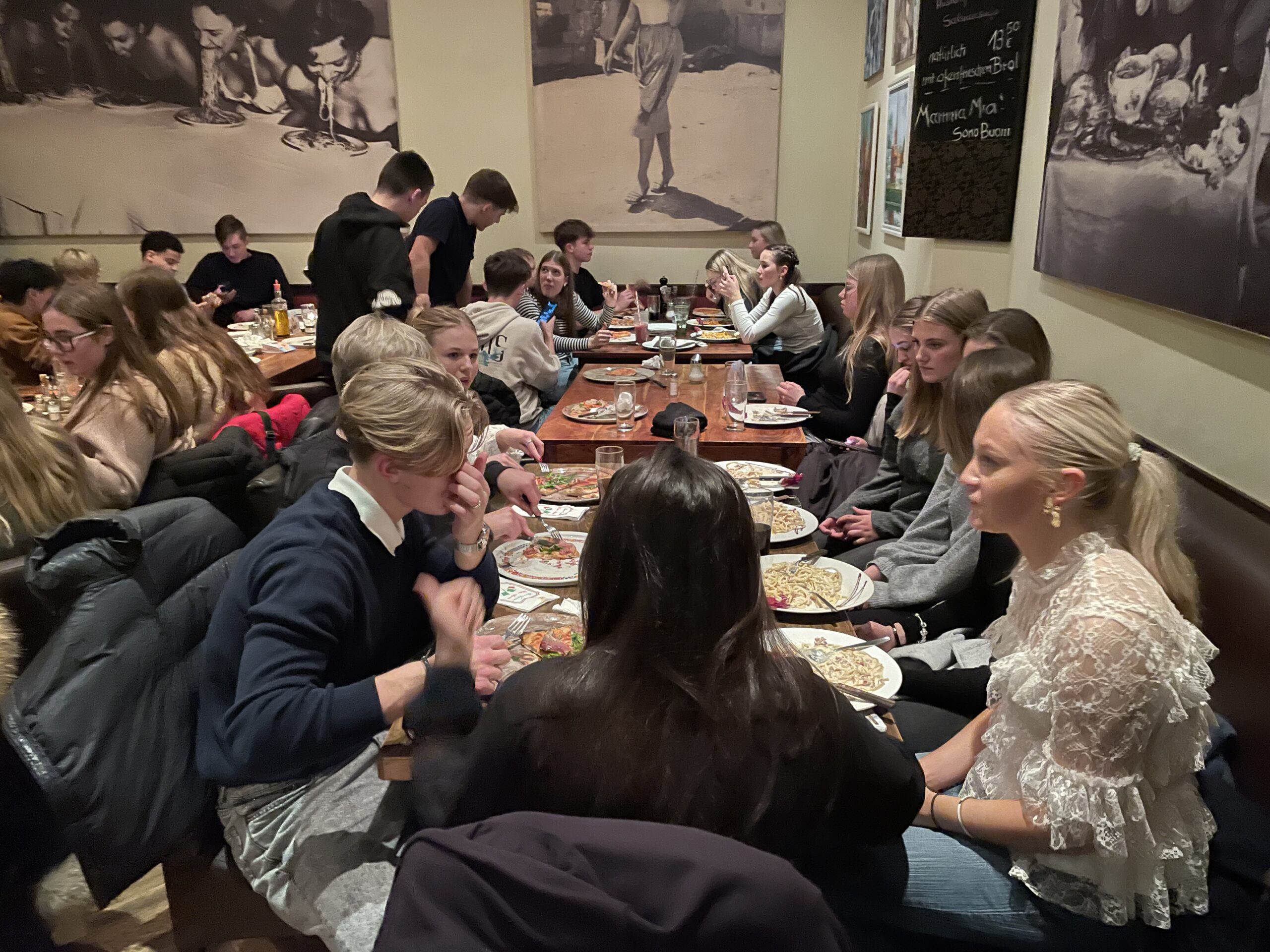 Das Essen selbst war sehr lecker und wir alle saßen gemeinsam und unterhielten uns über die Woche, die wir gemeinsam verbracht hatten. Frau Piechotta und die schwedischen Lehrer stellten uns am Ende Fragen, die wir mit einem Schüler der Partnerschule zusammen besprechen sollten. Was hast du gelernt? Welche Aktivität hat euch am besten in Kontakt gebracht? Was würdest du dir für die nächste Begegnung wünschen? Es war sehr interessant, all die Meinungen zu diesen Fragen, über Lübeck und die Kultur zu hören.