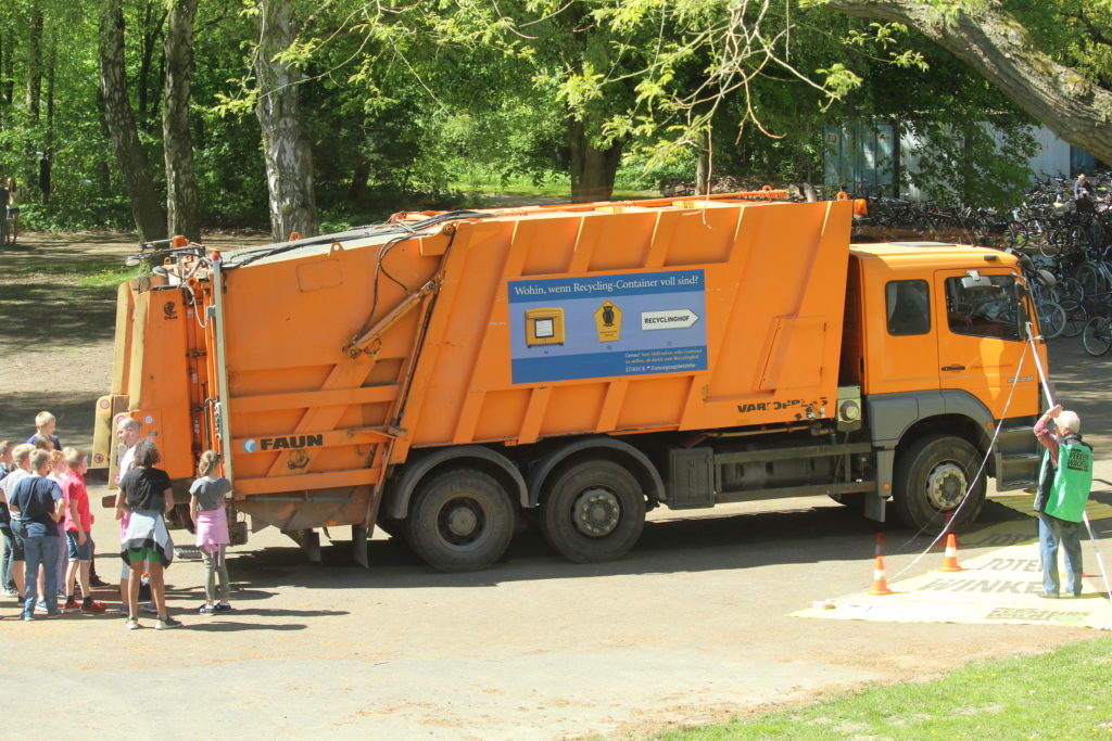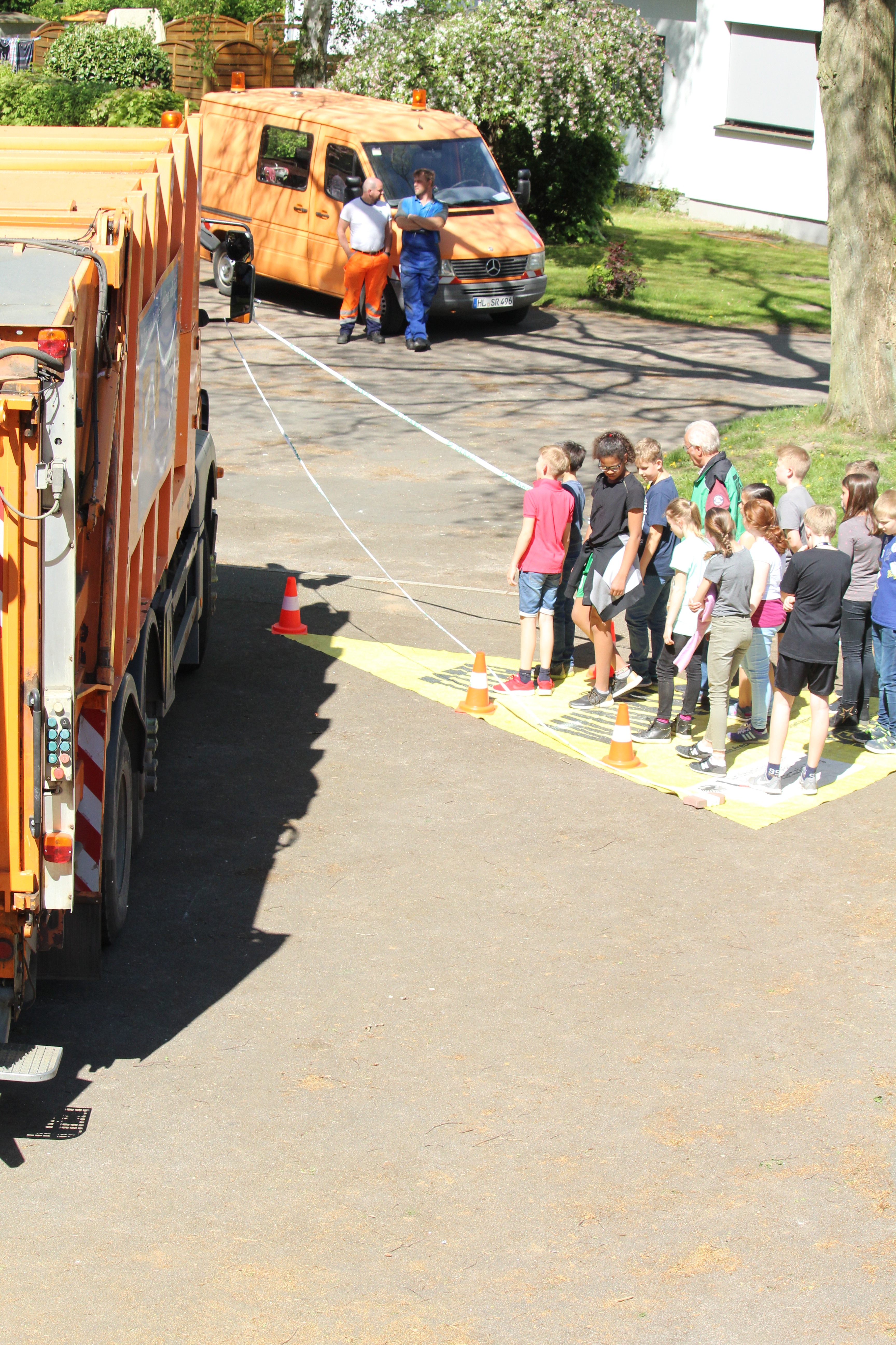 Am Montag, den fünften Mai, kam ein LKW zu uns auf den Schulhof. Dort erklärte uns ein Polizist, was der „tote Winkel“ ist und welche Gefahren bestehen, wenn man sich als Verkehrsteilnehmer in diesem Bereich eines Fahrzeugs aufhält.